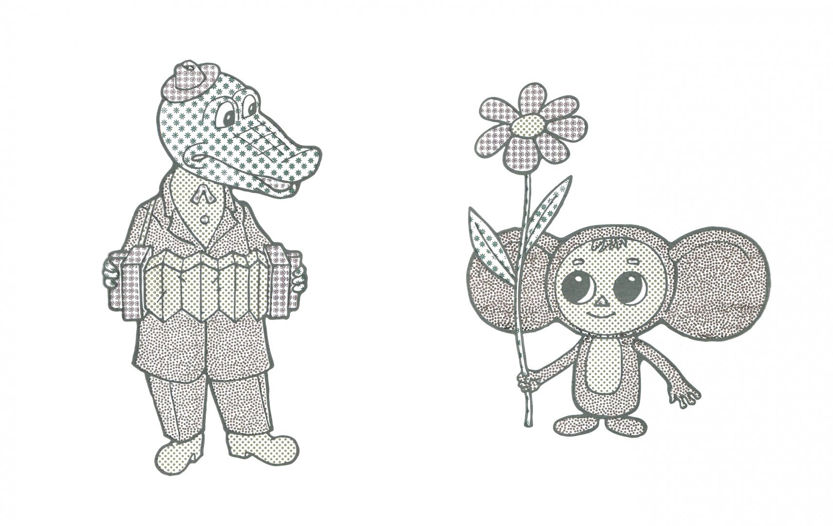 Чебурашка и крокодил гена картинки для срисовки
