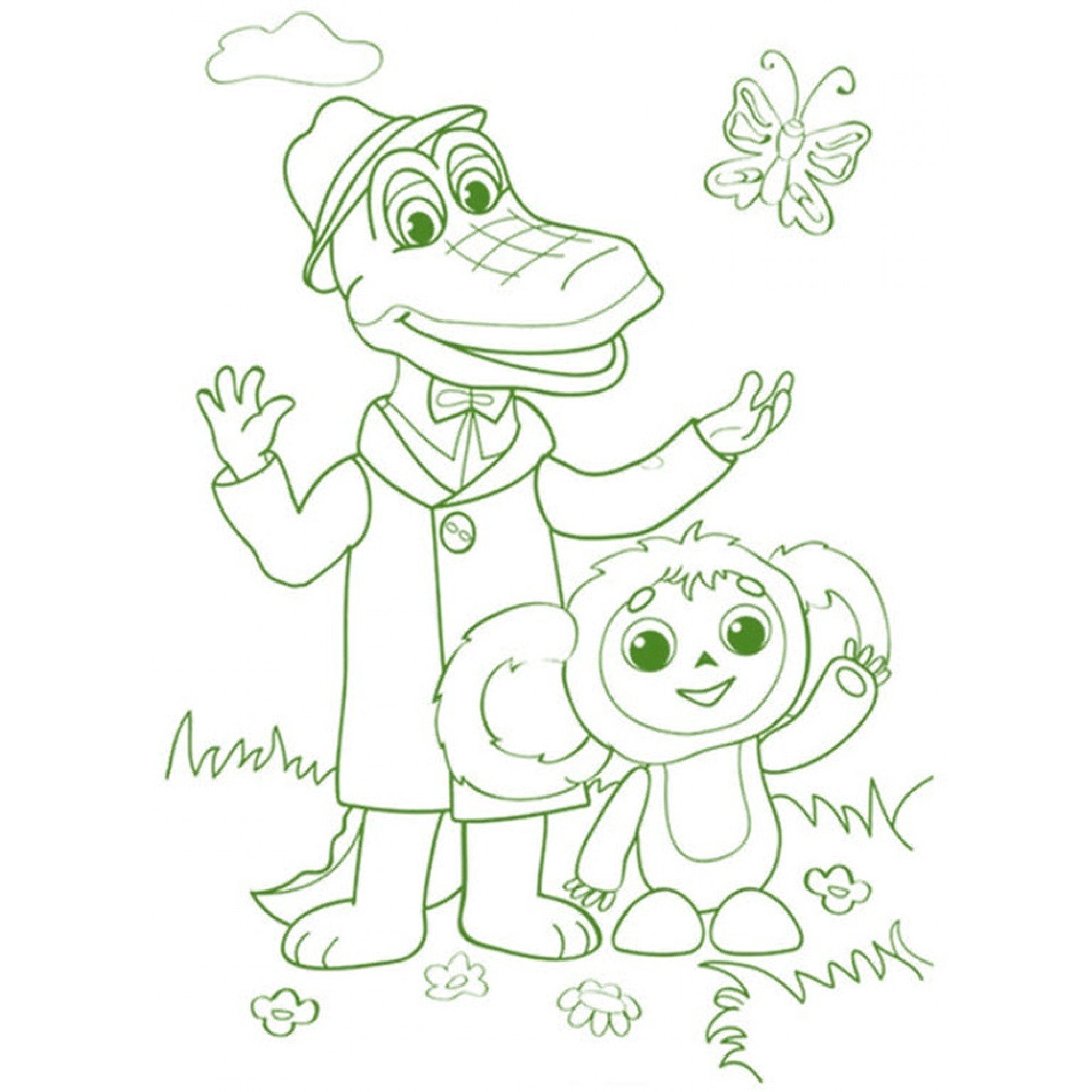 Раскраска Чебурашка и крокодил Гена для печати