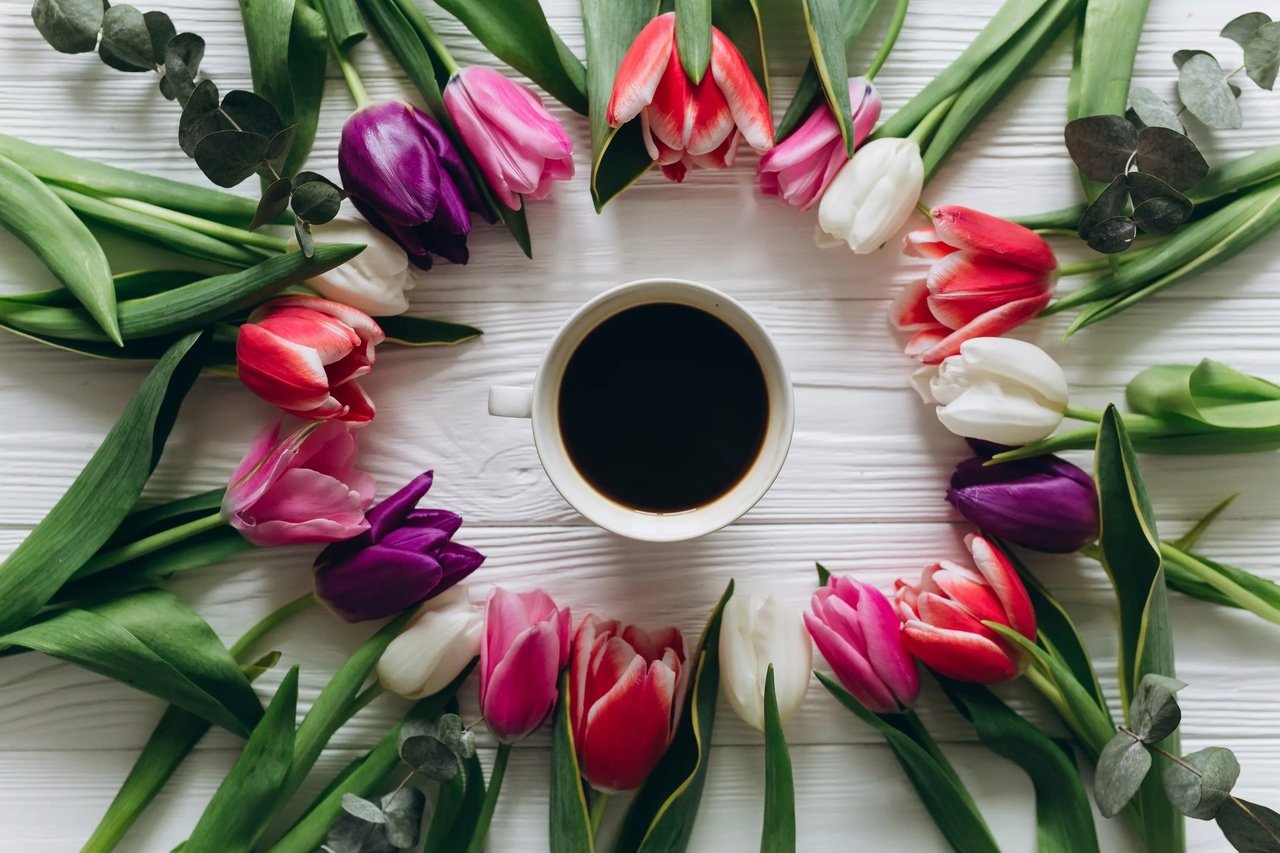 Тюльпаны и кофе стильные