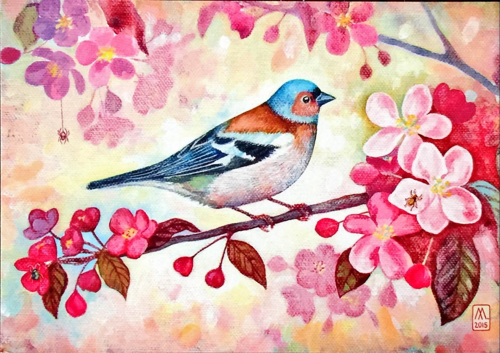 Птицы цветными карандашами