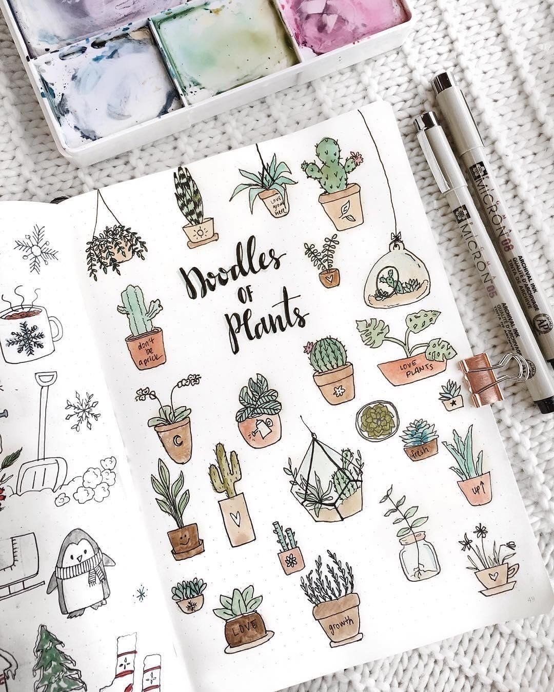 Милые рисунки акварелью в скетчбуке