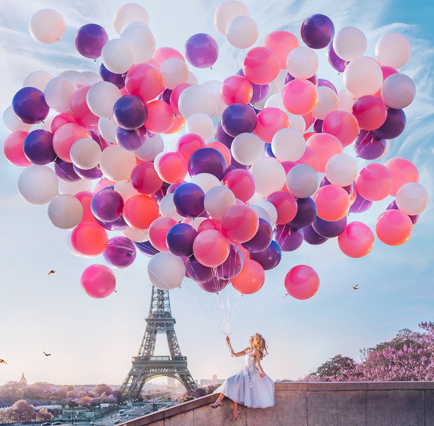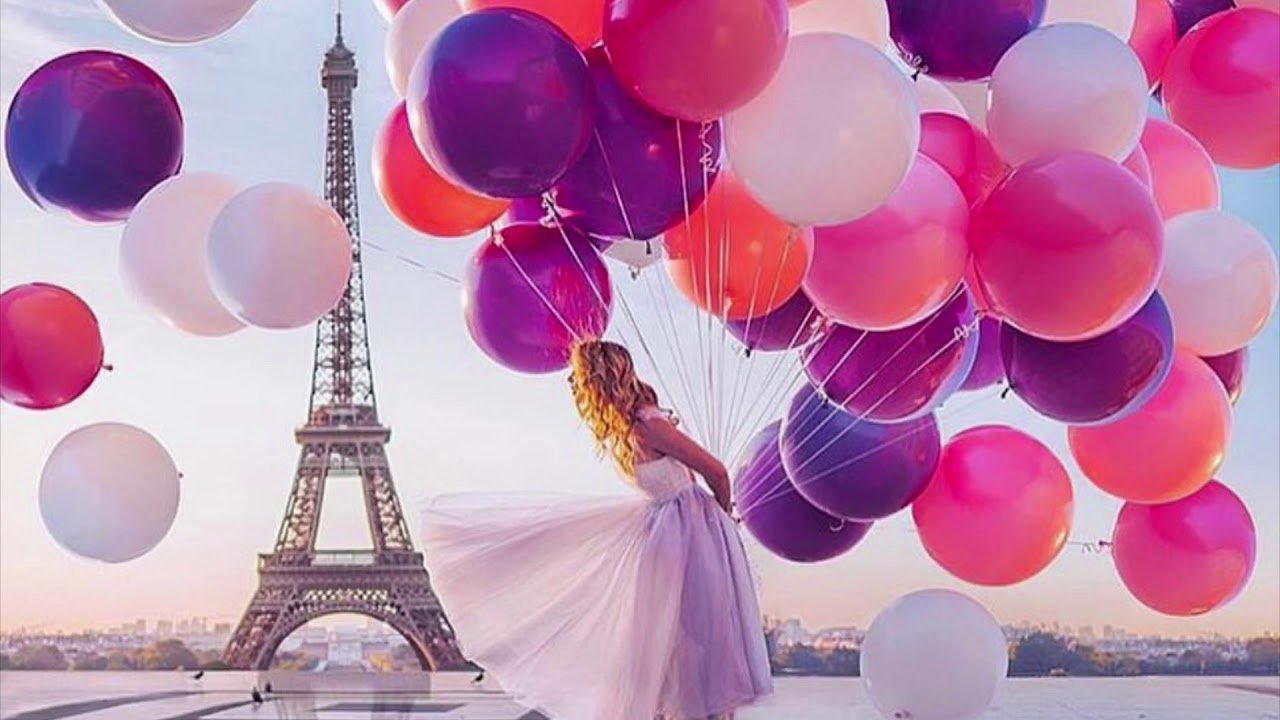 Девушка с шариками в Париже