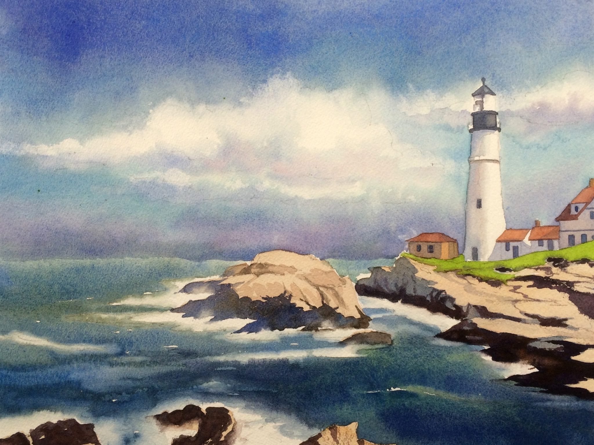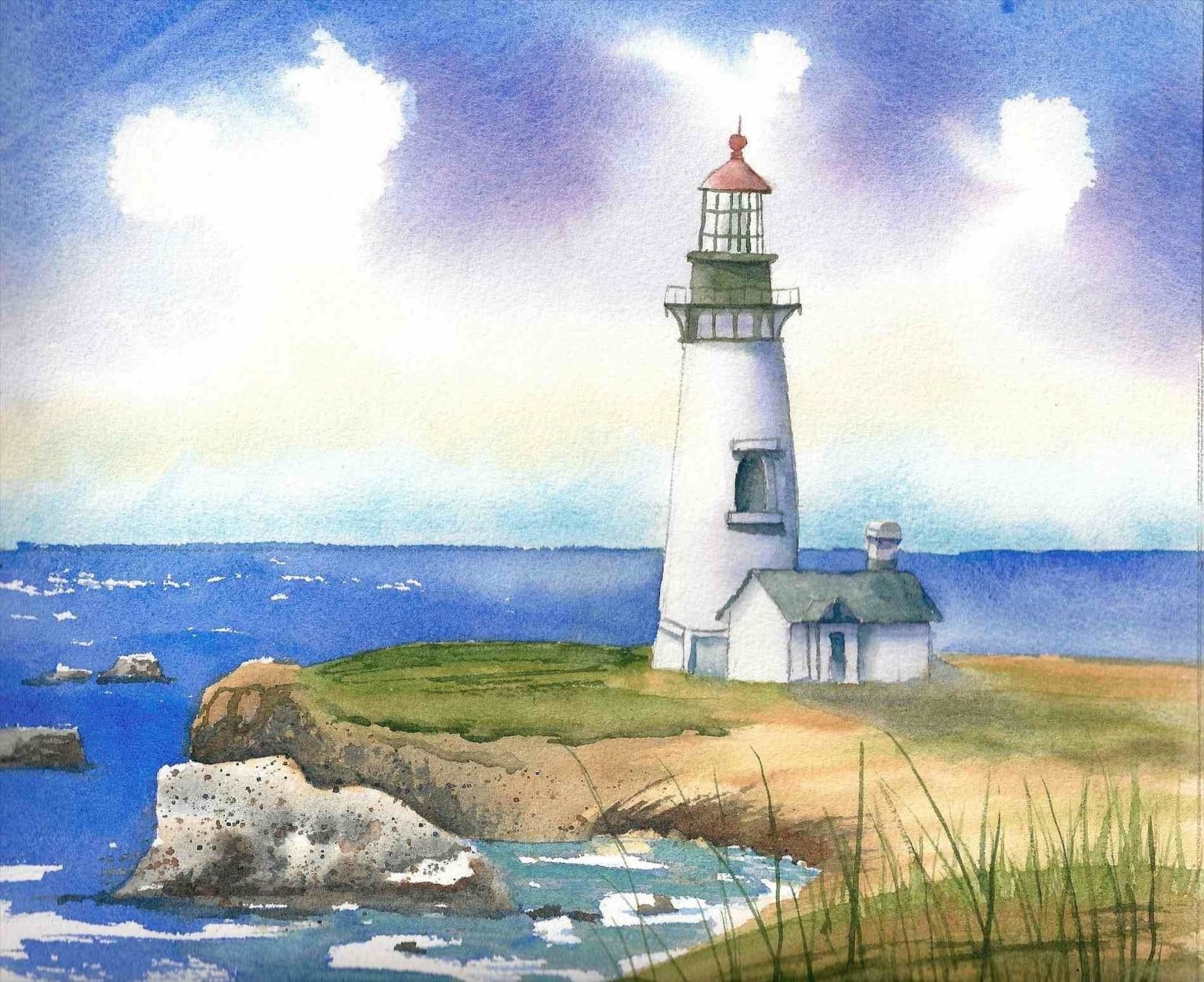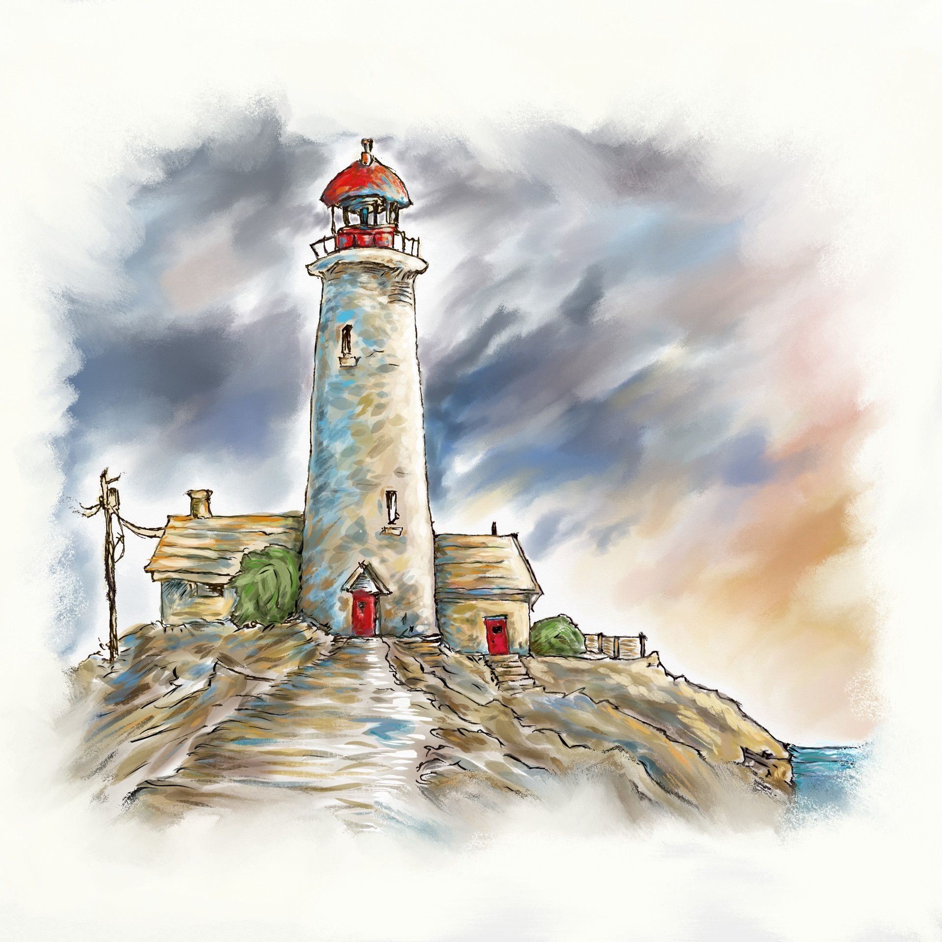Скетч Маяк акварелью