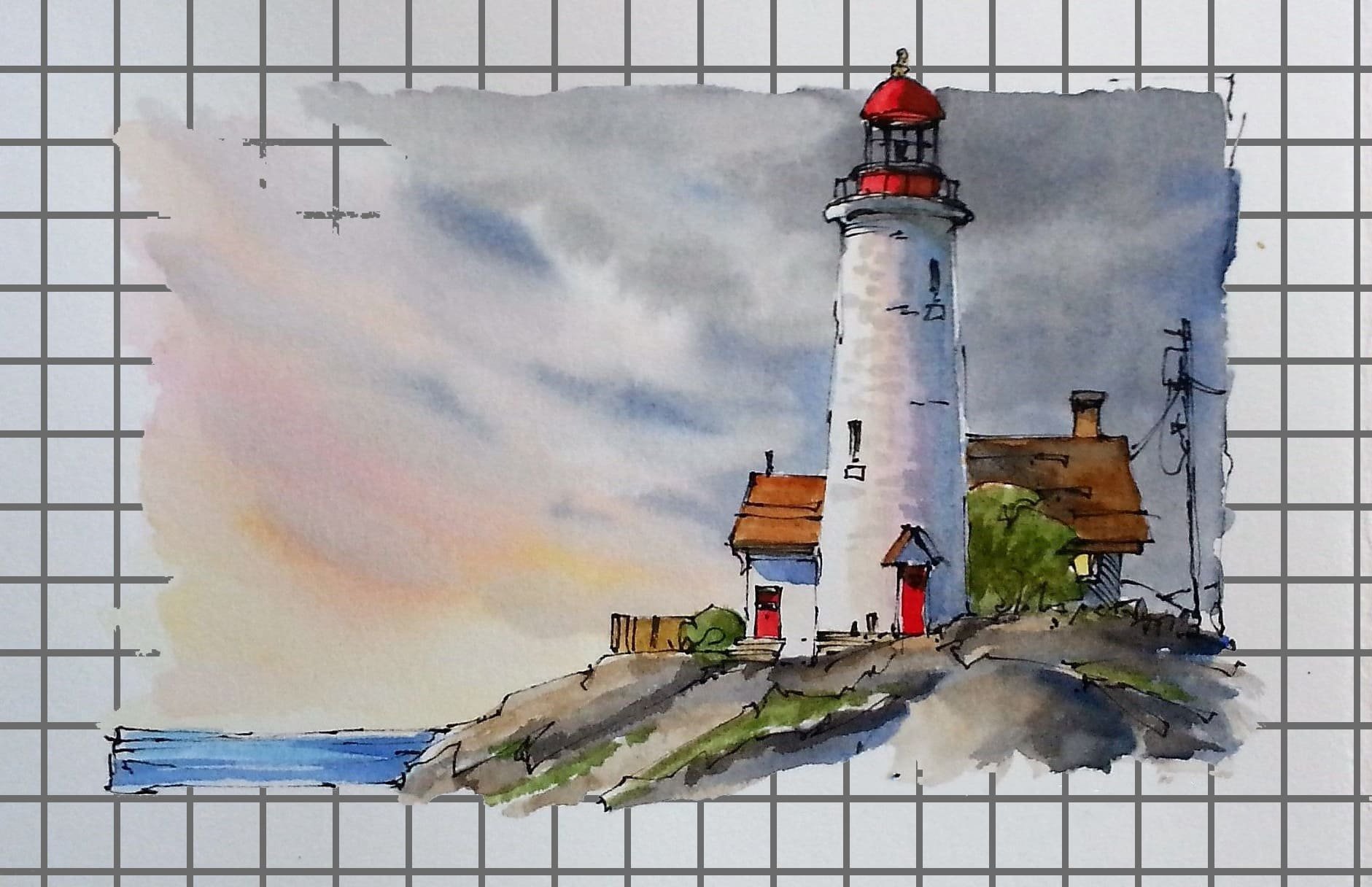 Скетчинг акварелью Маяк