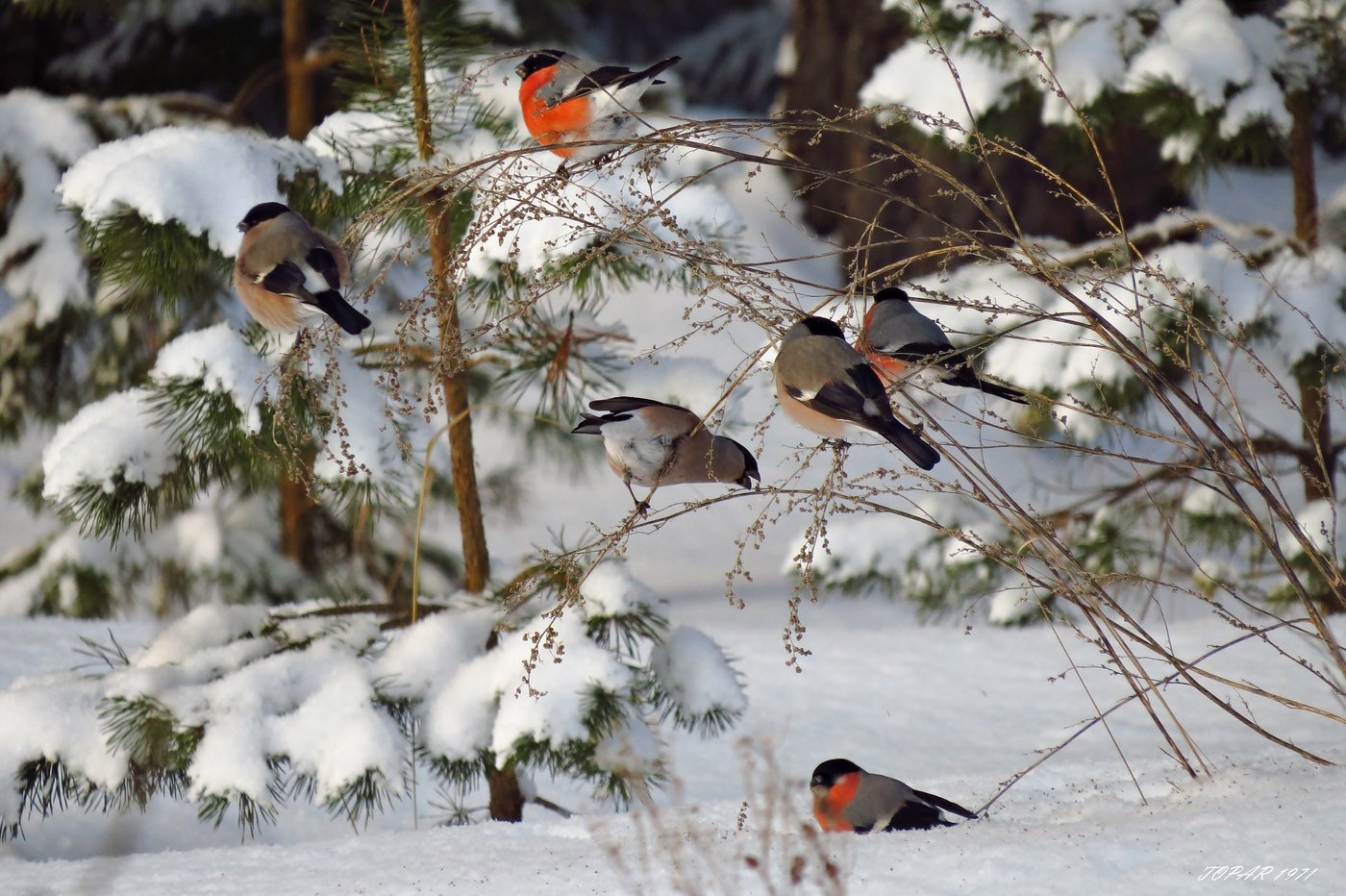 Фото: Снегири на снегу
