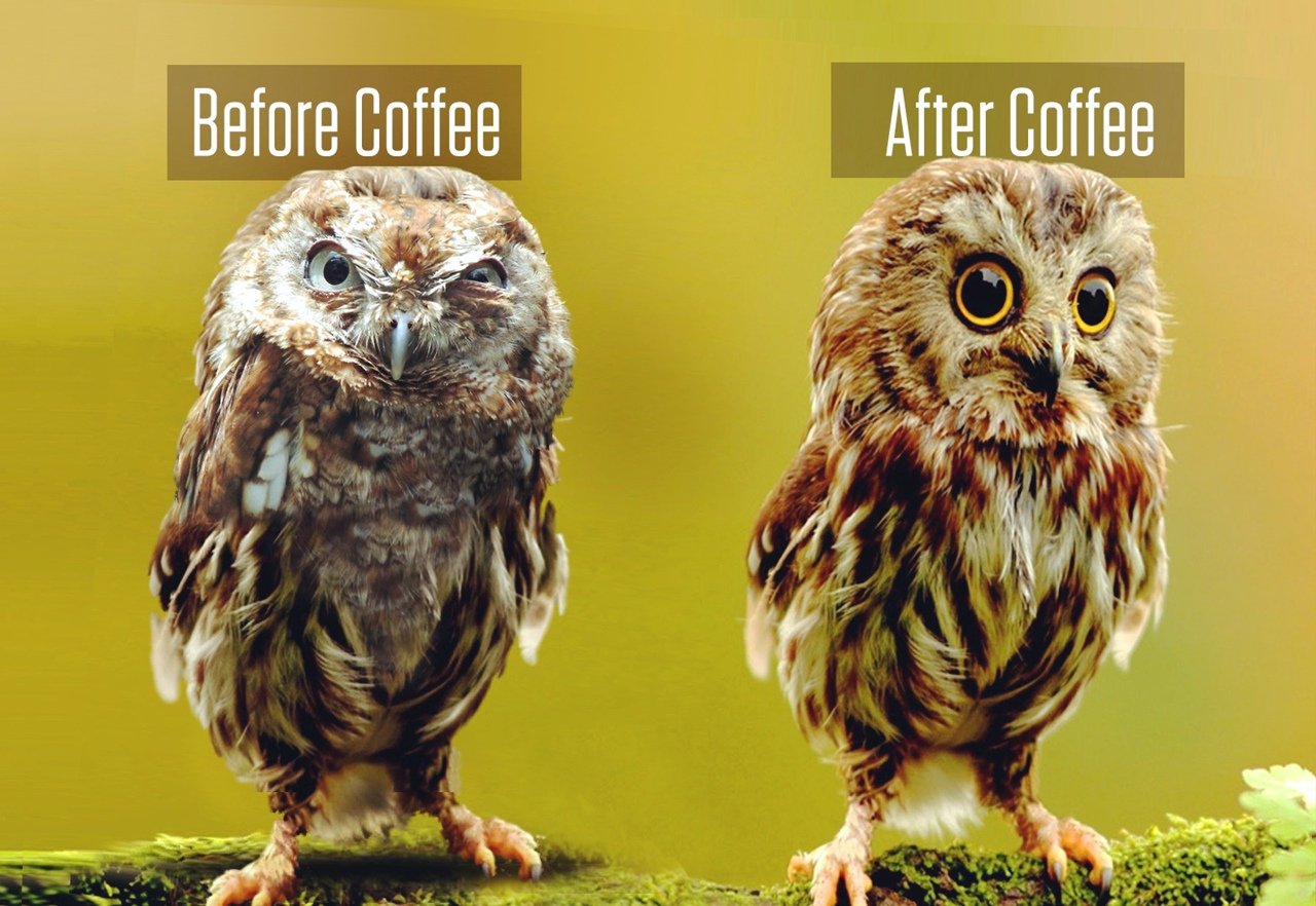 Сонная Сова с кофе