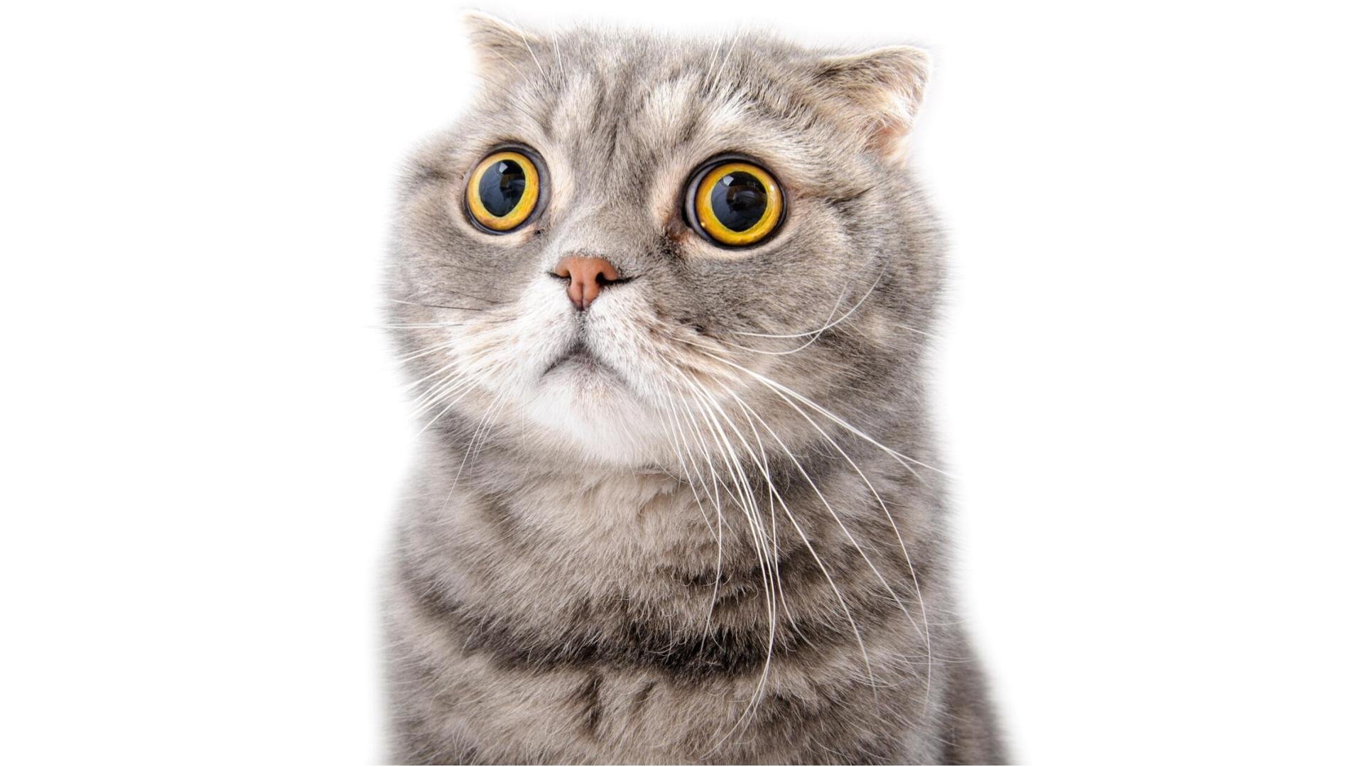 Фото: Удивлённый кот на белом фоне