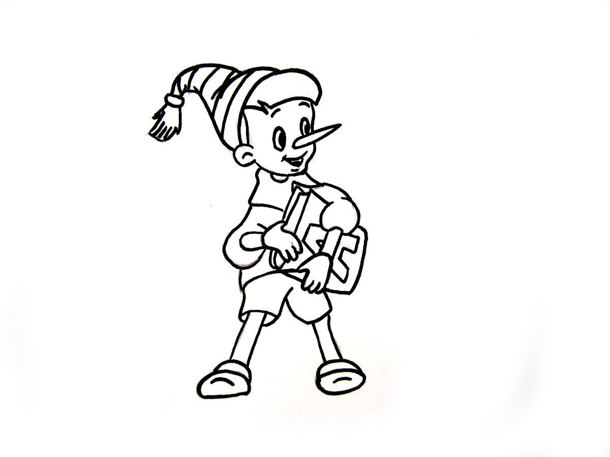 Буратино рисунок карандашом