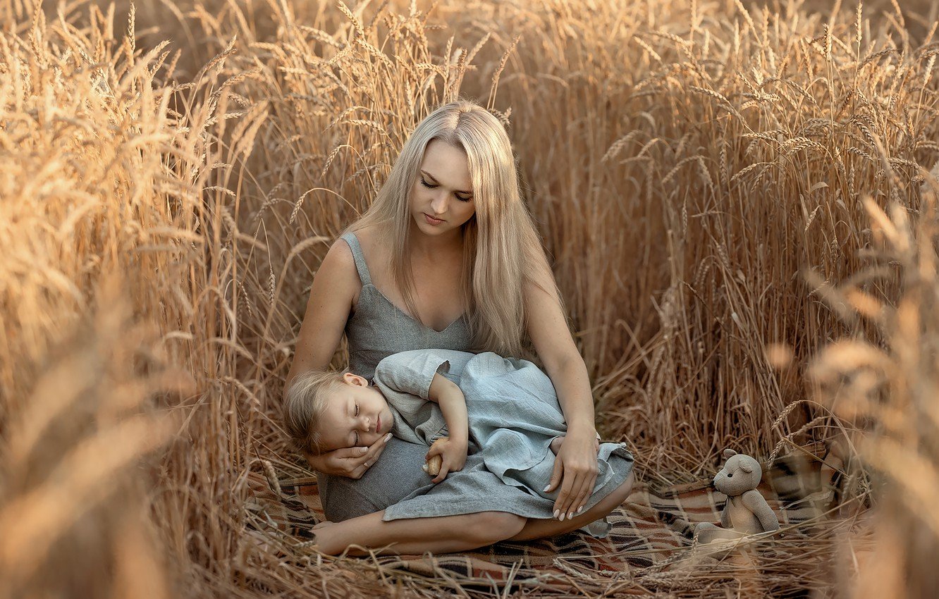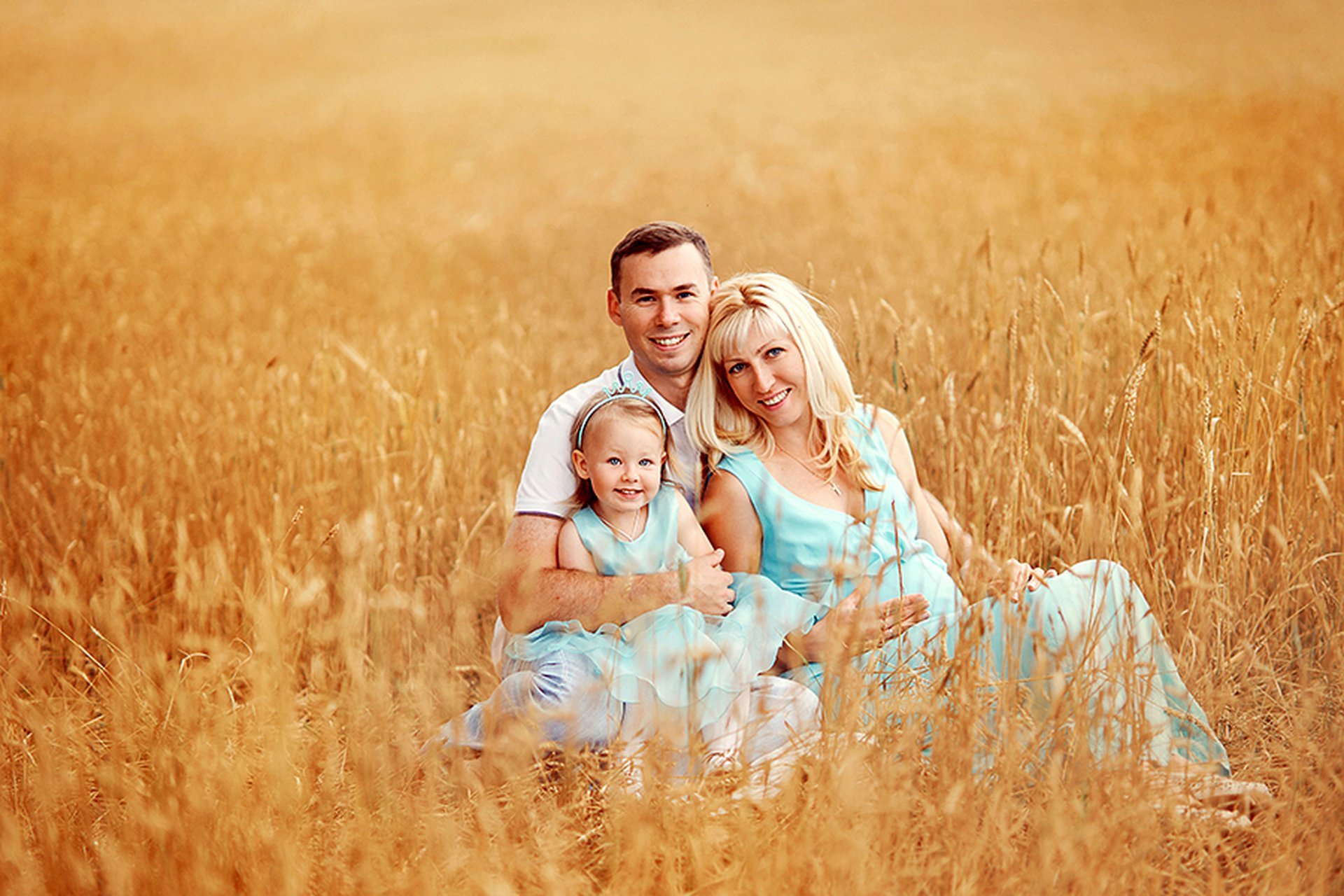 Семья в пшеничном поле