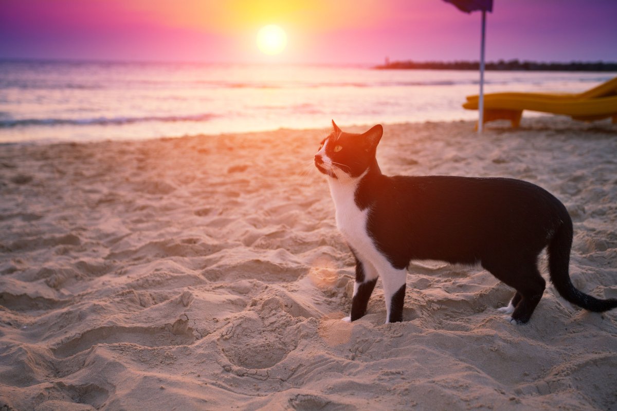 Кошка на берегу моря