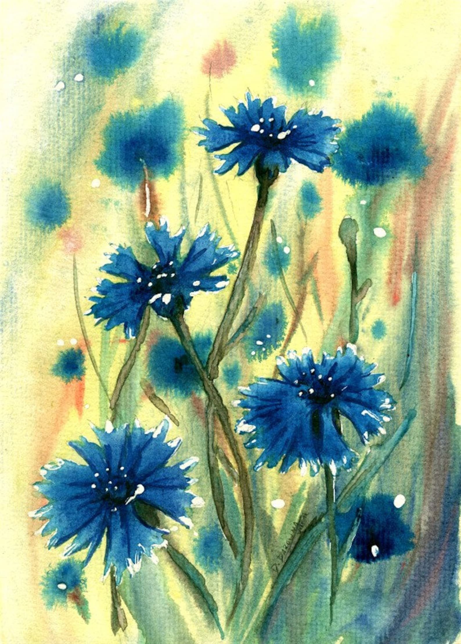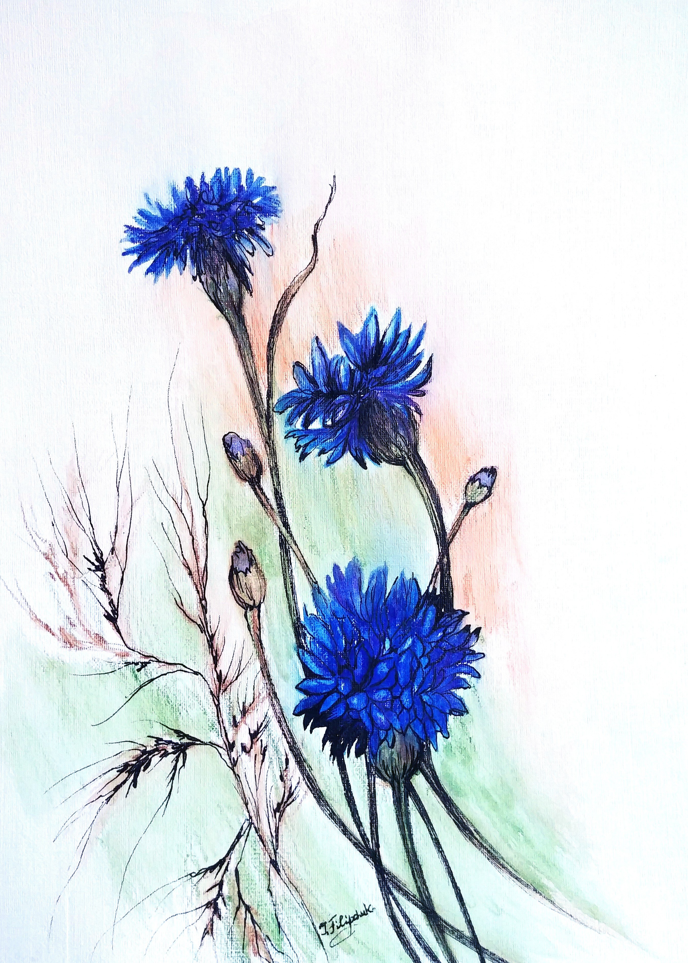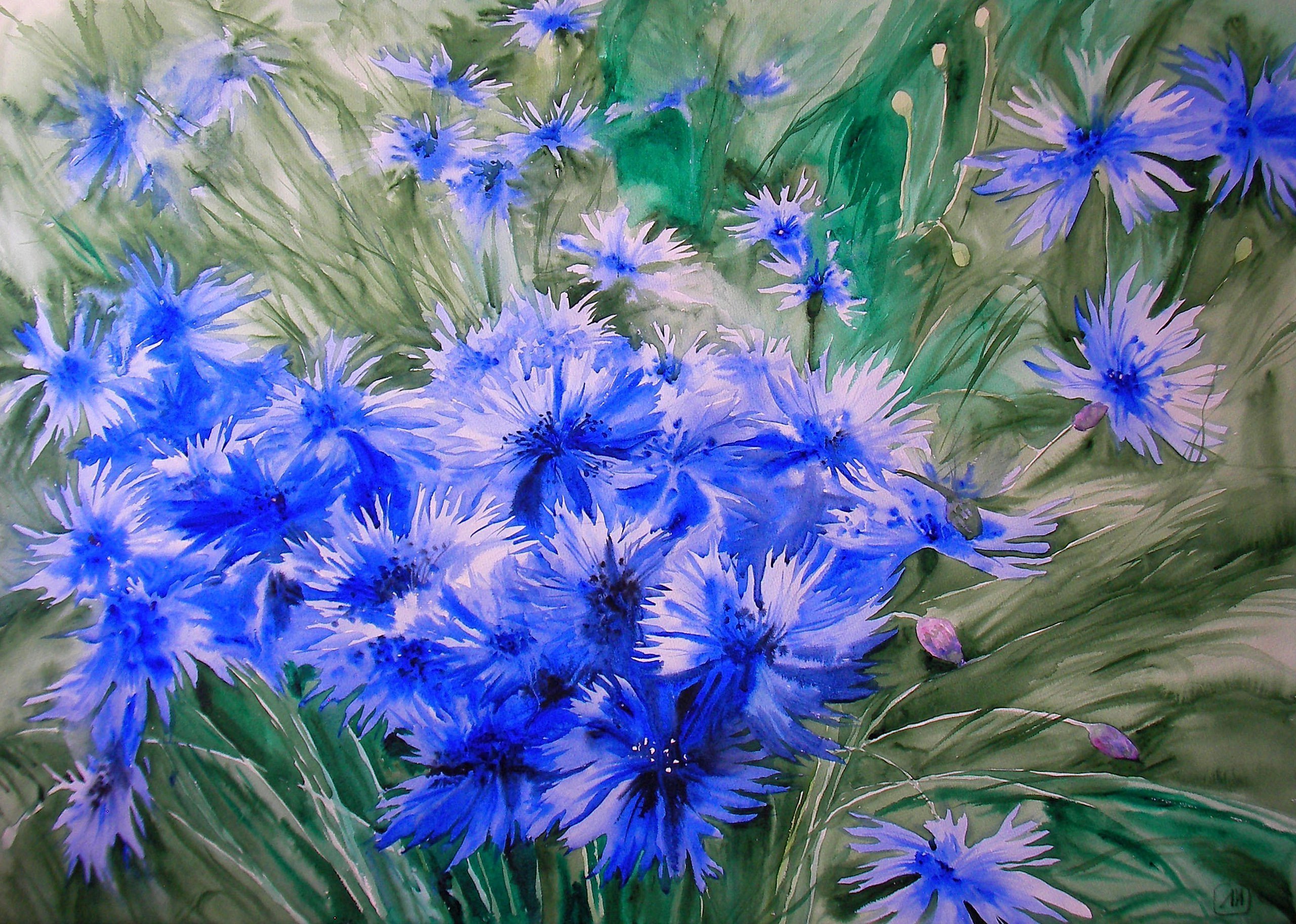 Марина Трушникова акварель васильки