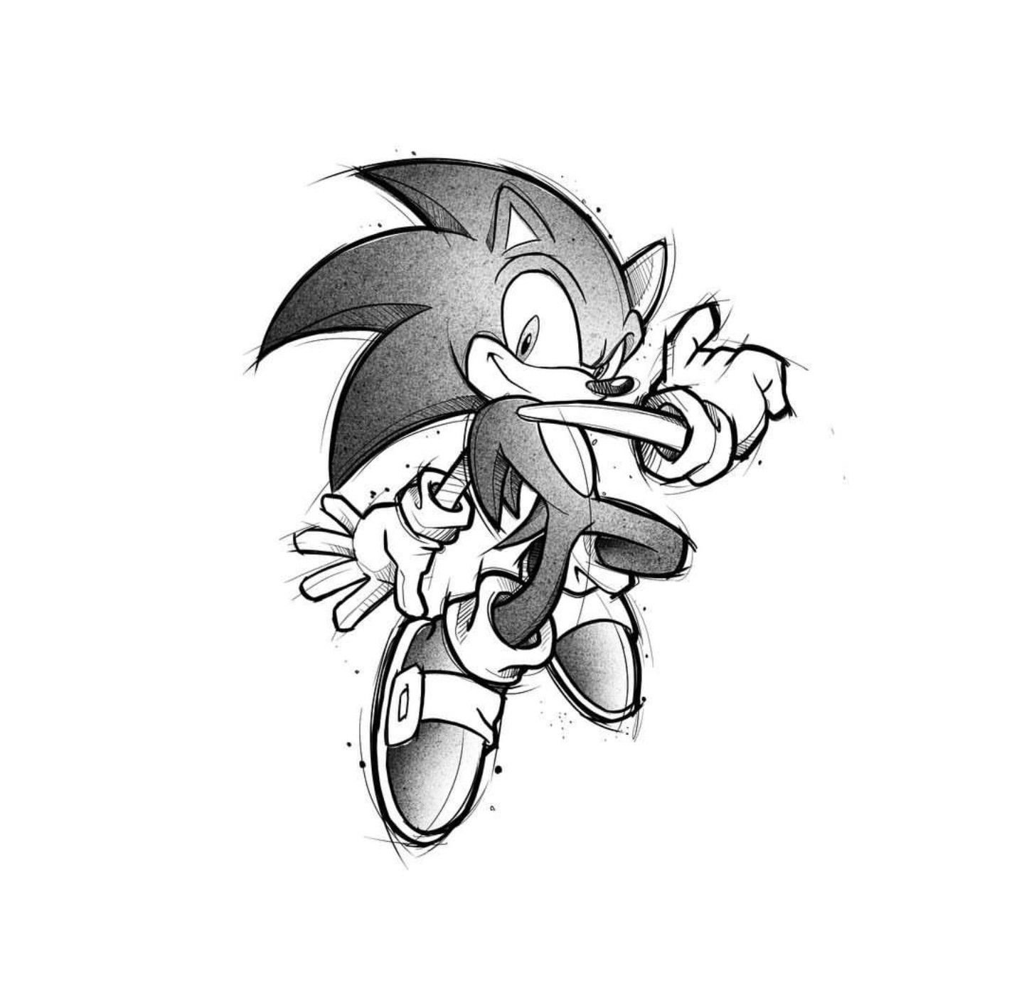 Соник картинка черно белая
