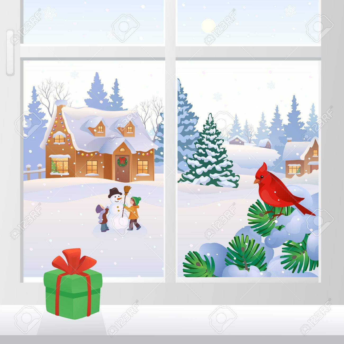Зимнее окно картинка для детей