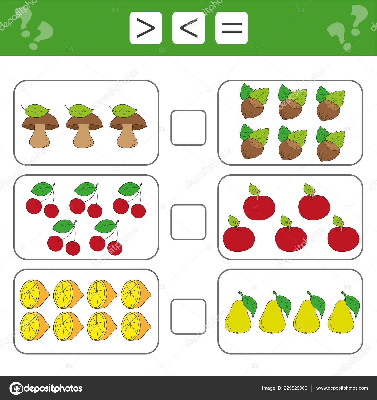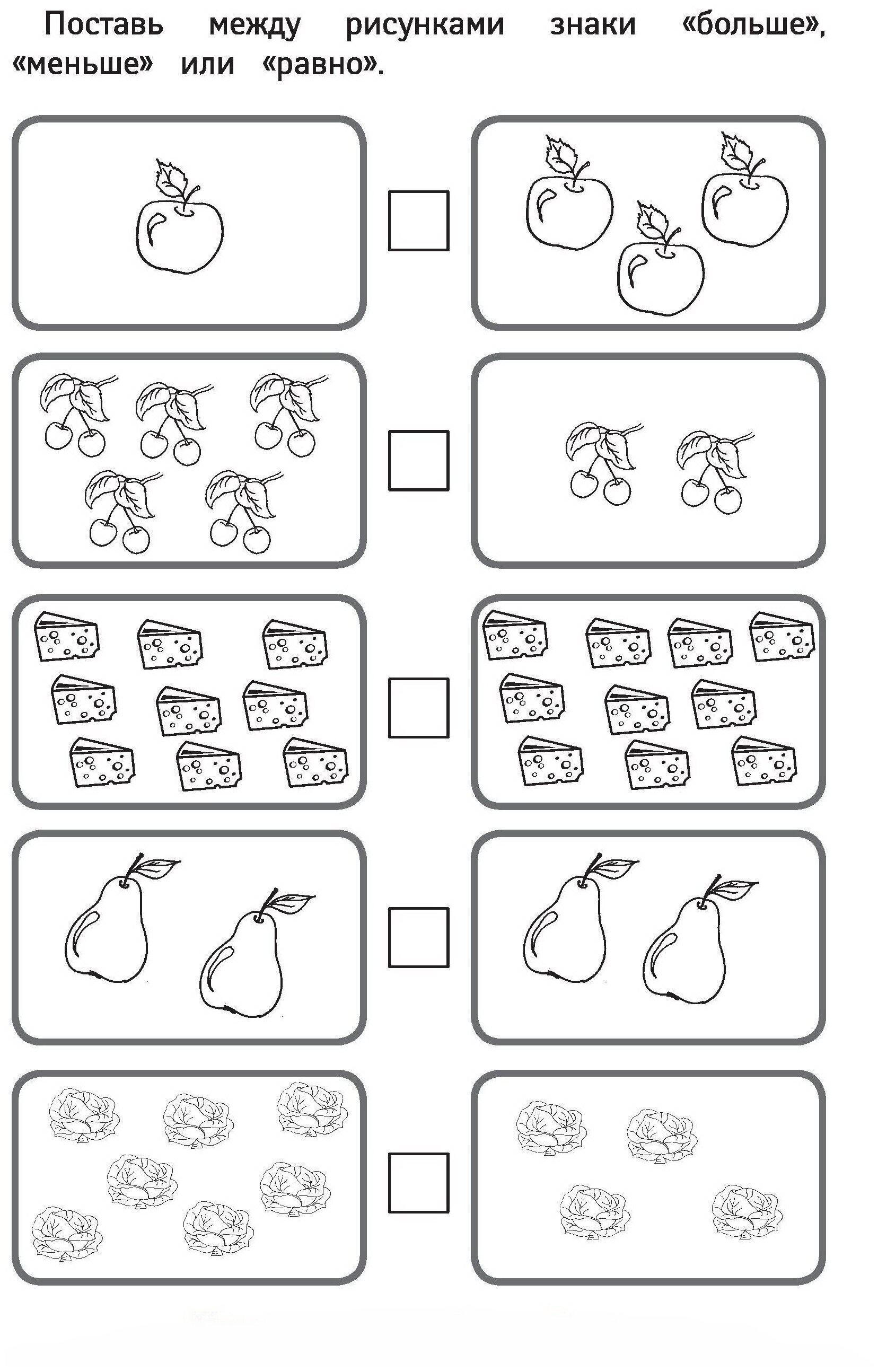 Больше меньше равно для дошкольников задания