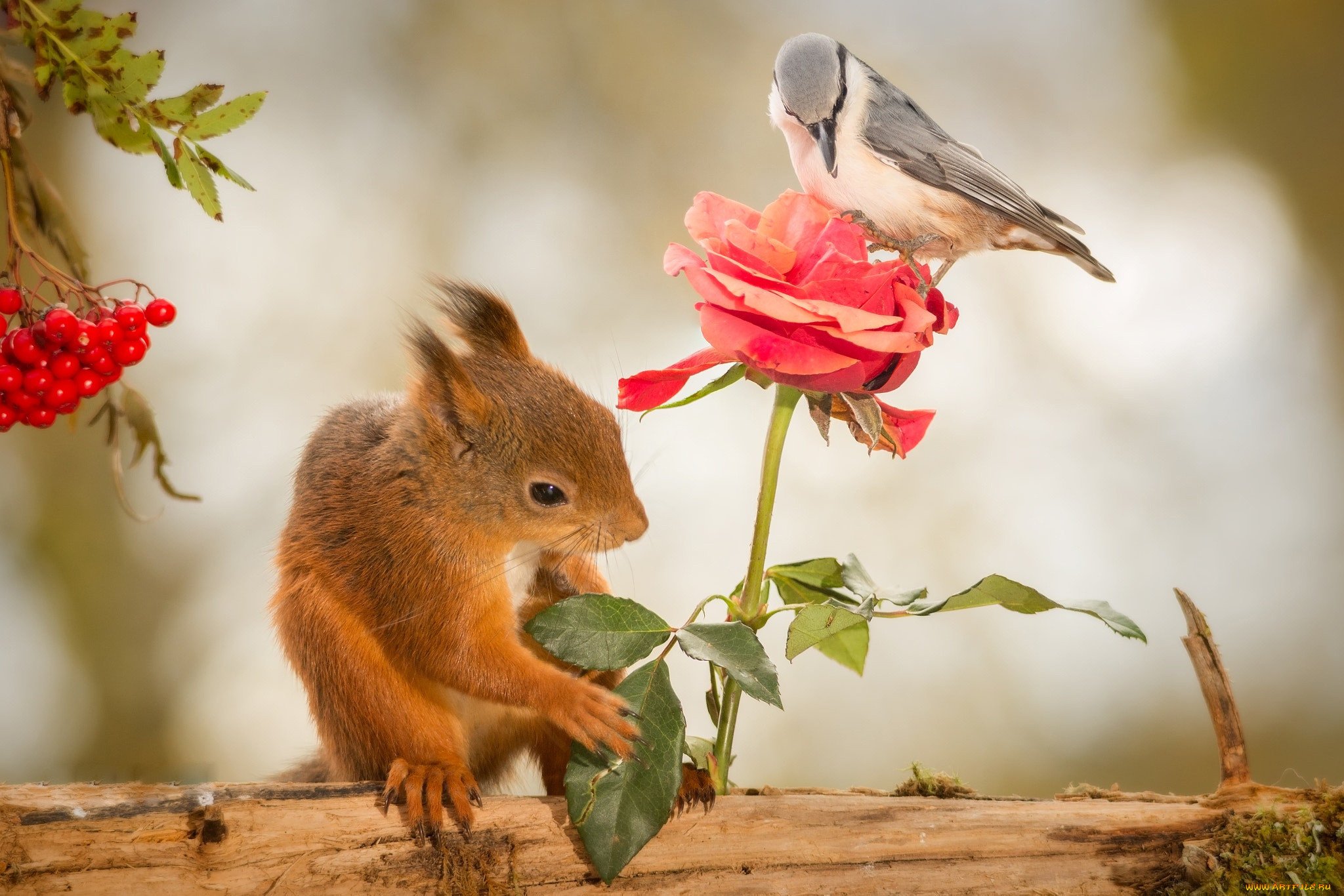 Вдохни новый день с собакойФото: Белочка с цветами