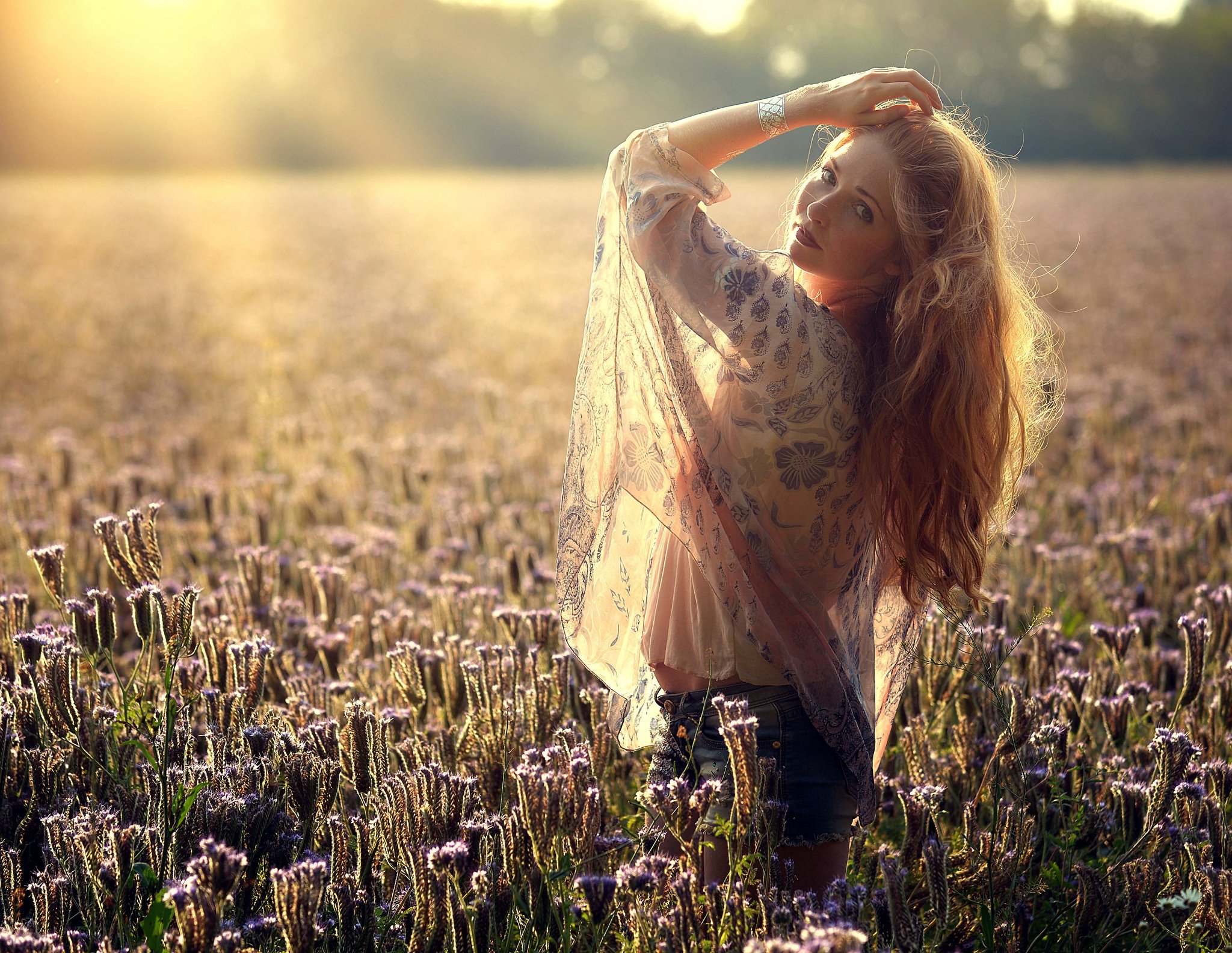 Красивая женщина в поле