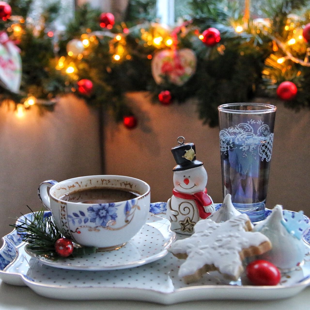 Цветы кофе и зимнее утро