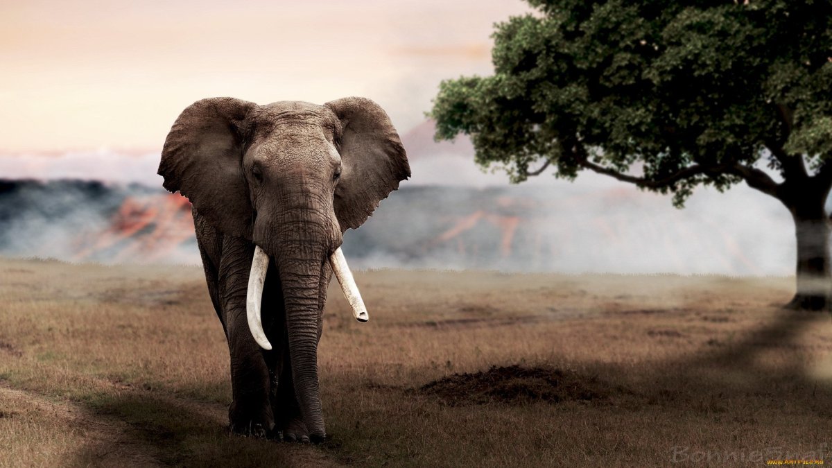 Картинка слон на дереве