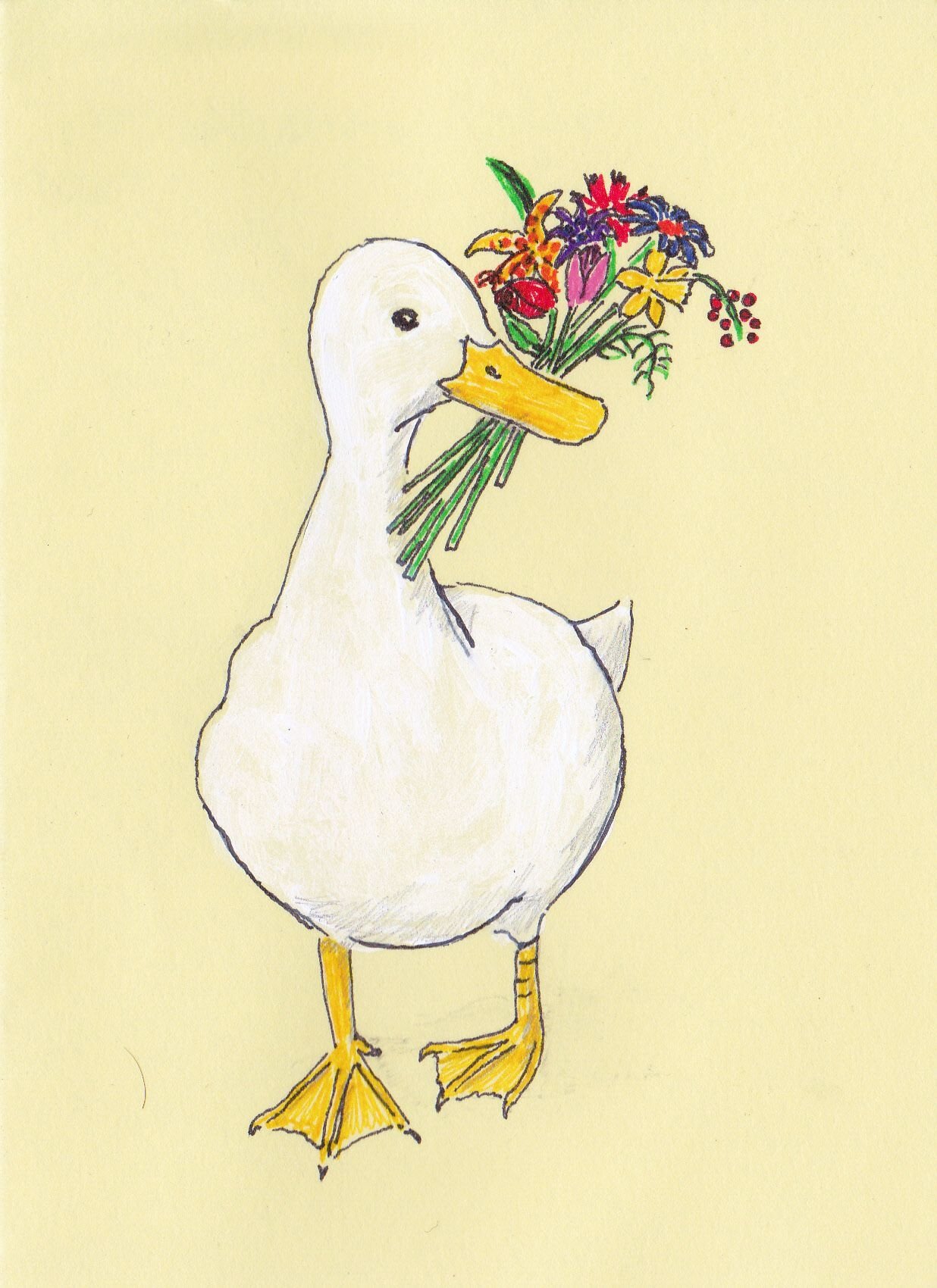 Нарисованный Гусь на белом фоне