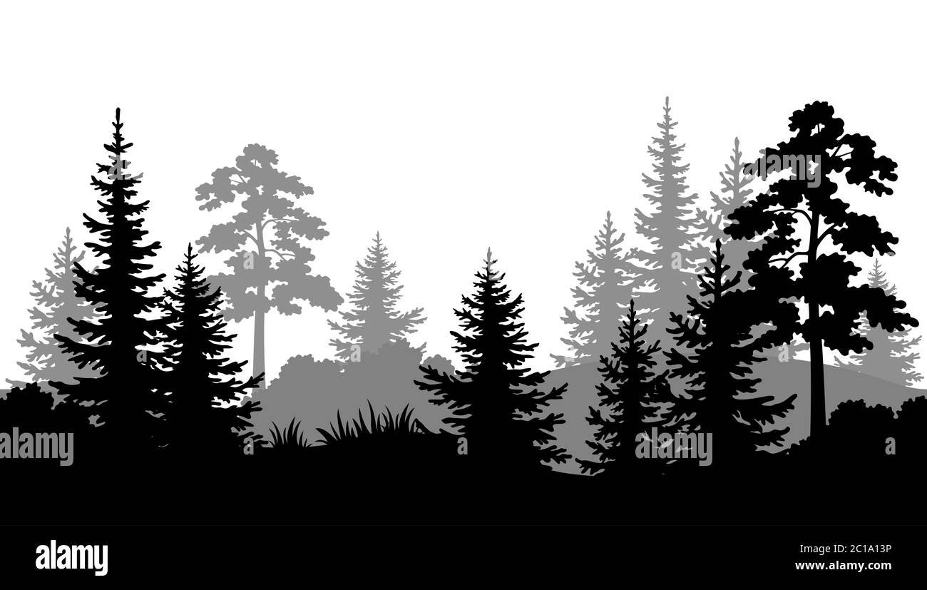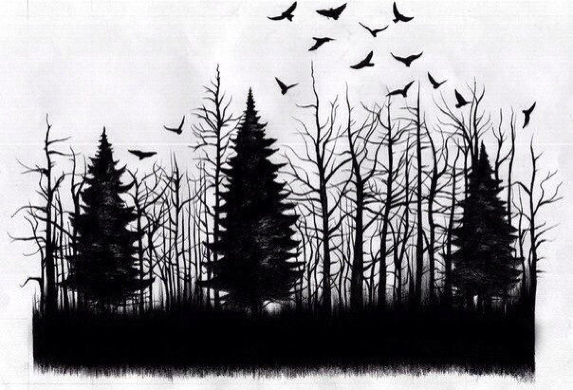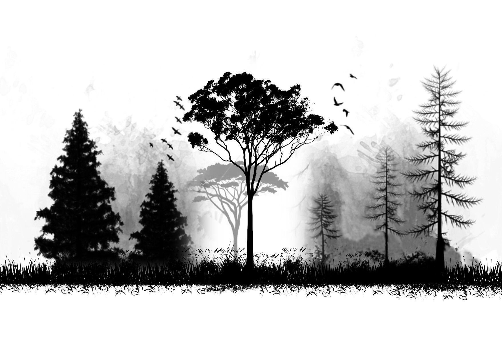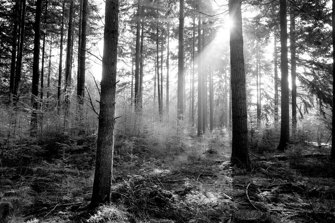 Лес черно белая картинка