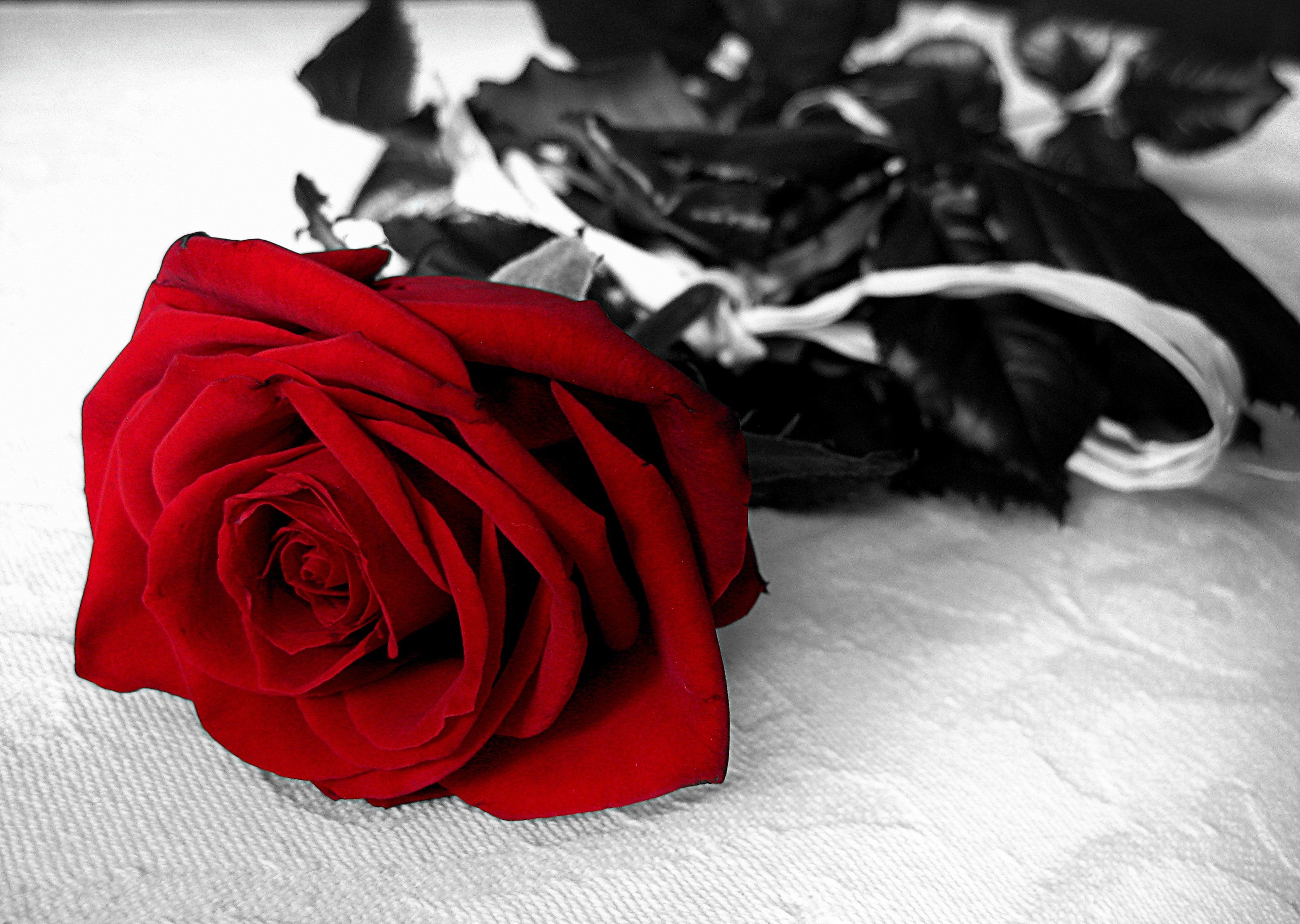 Черно белая девушка с красными губамиФото: Красная роза на черном