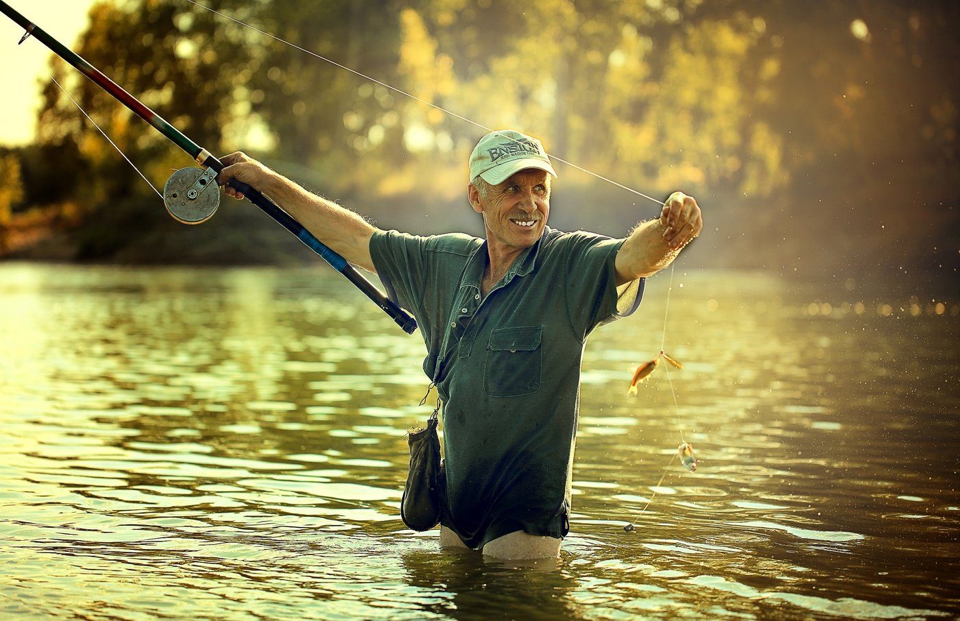 Фото: Рыбак с удочкой и рыбой