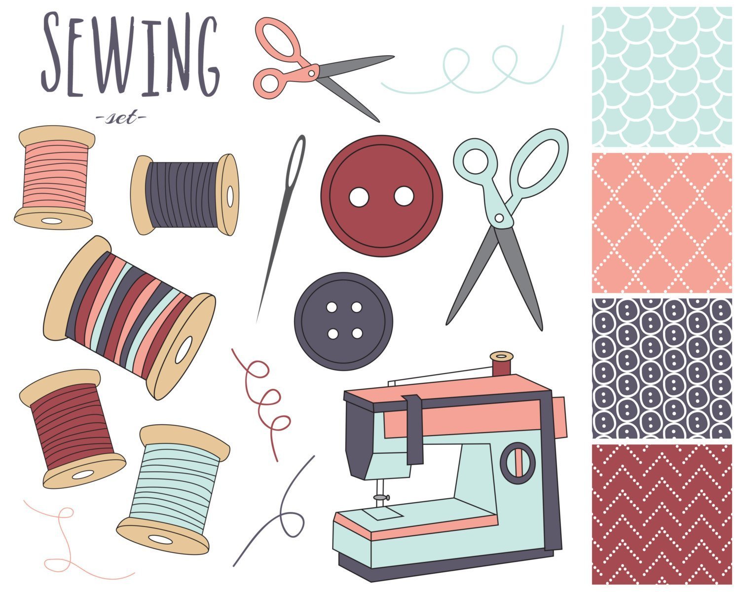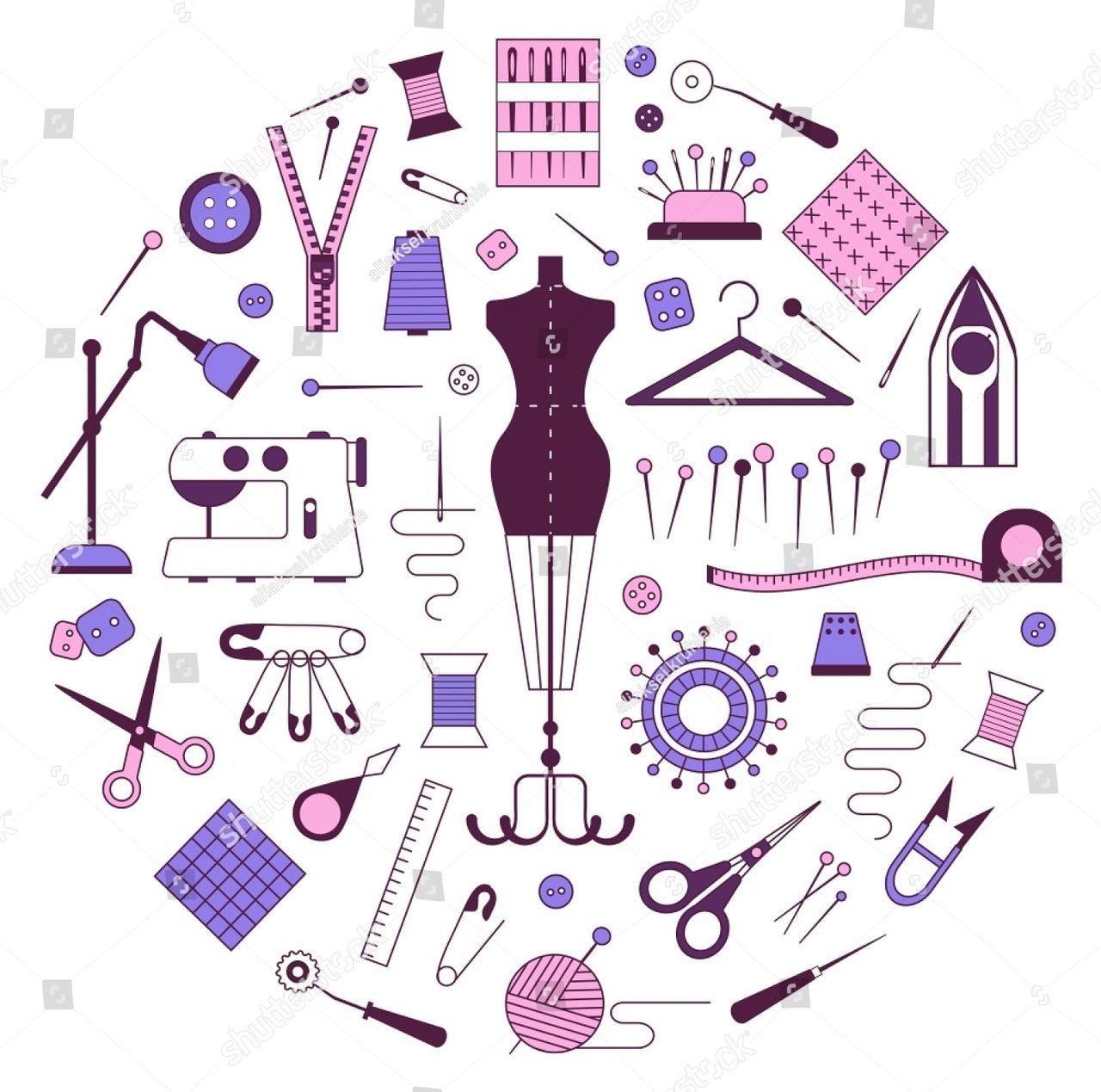 Принадлежности для шитья вектор