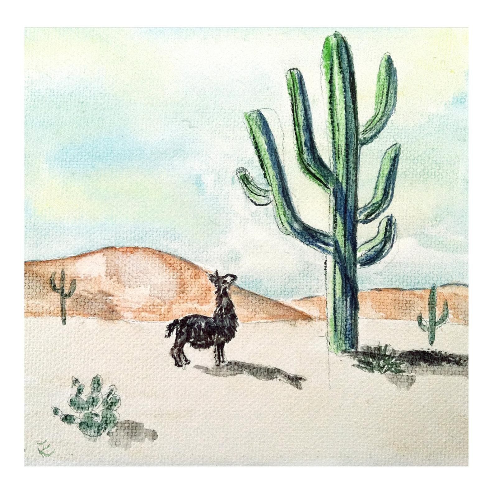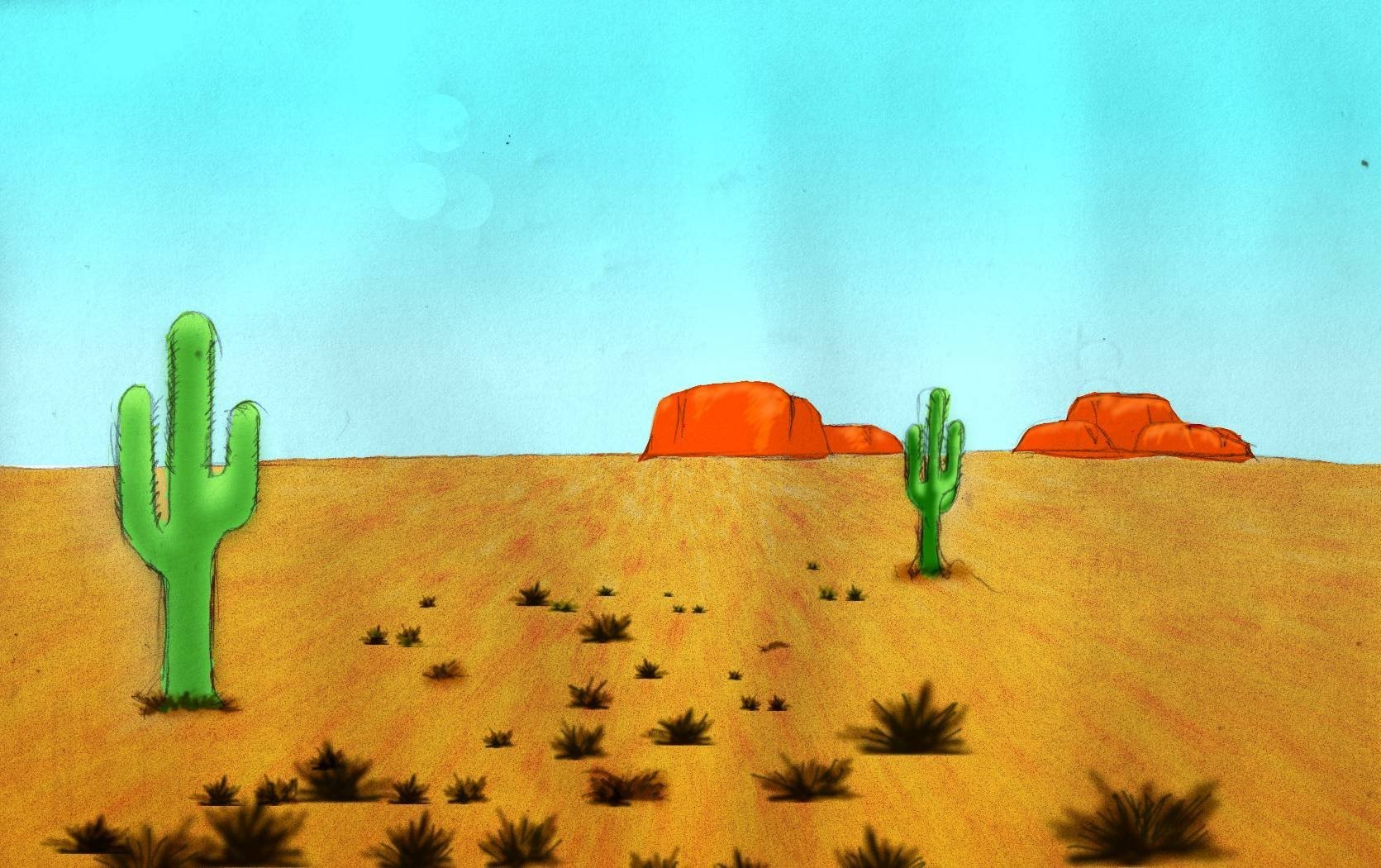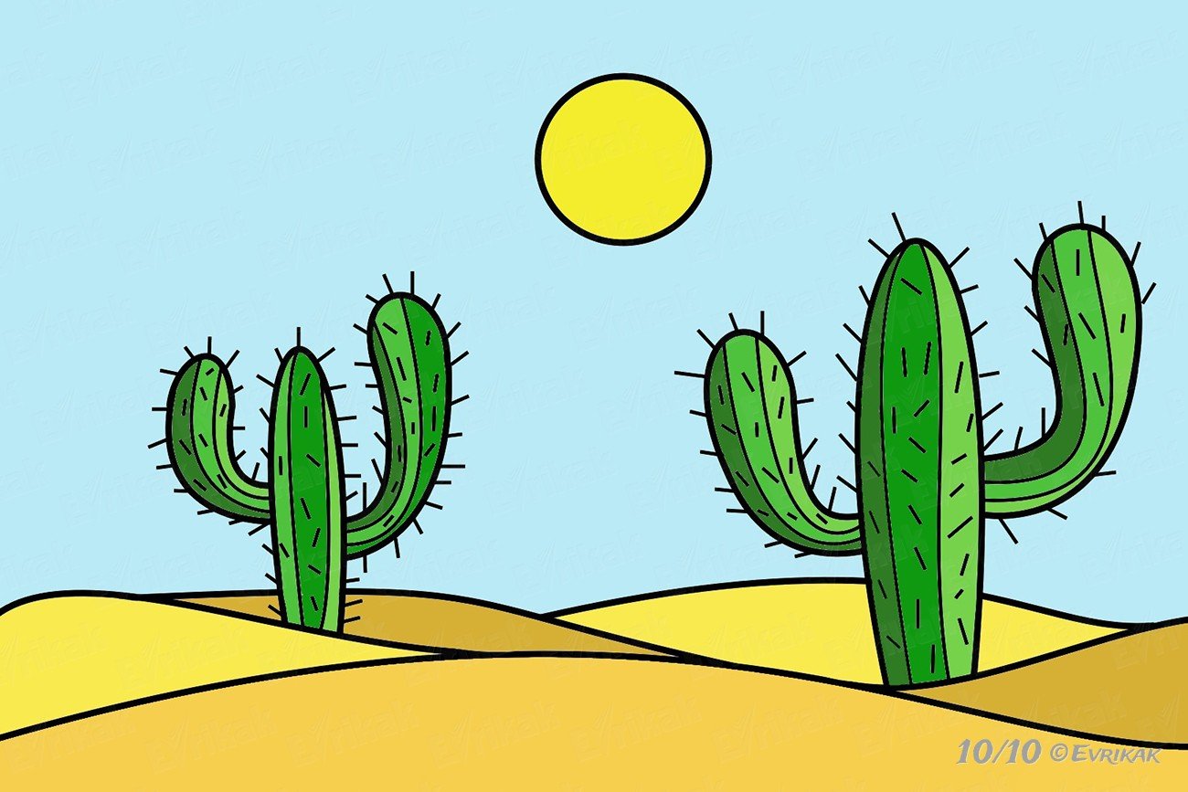 Кактус в пустыне рисунок