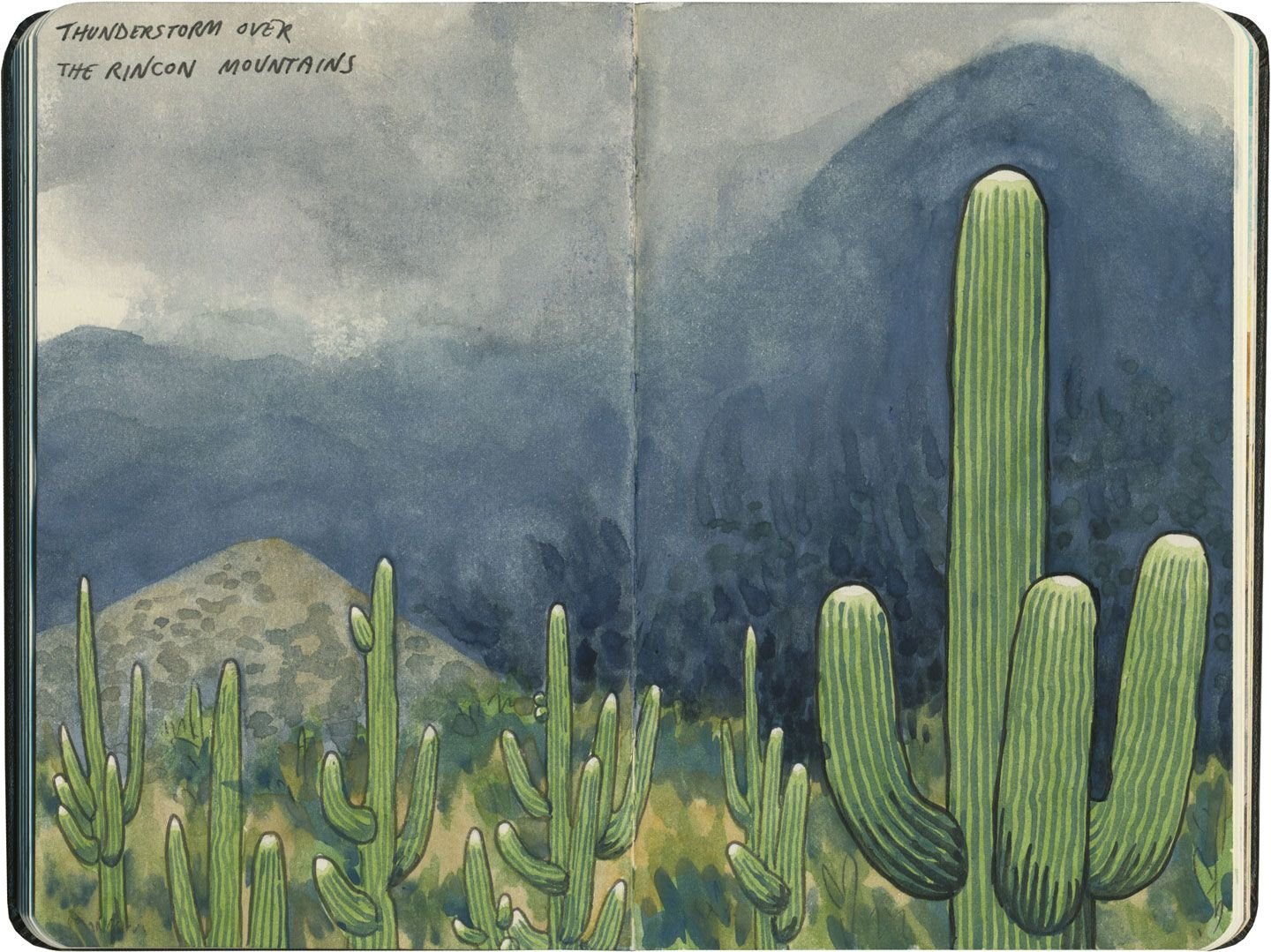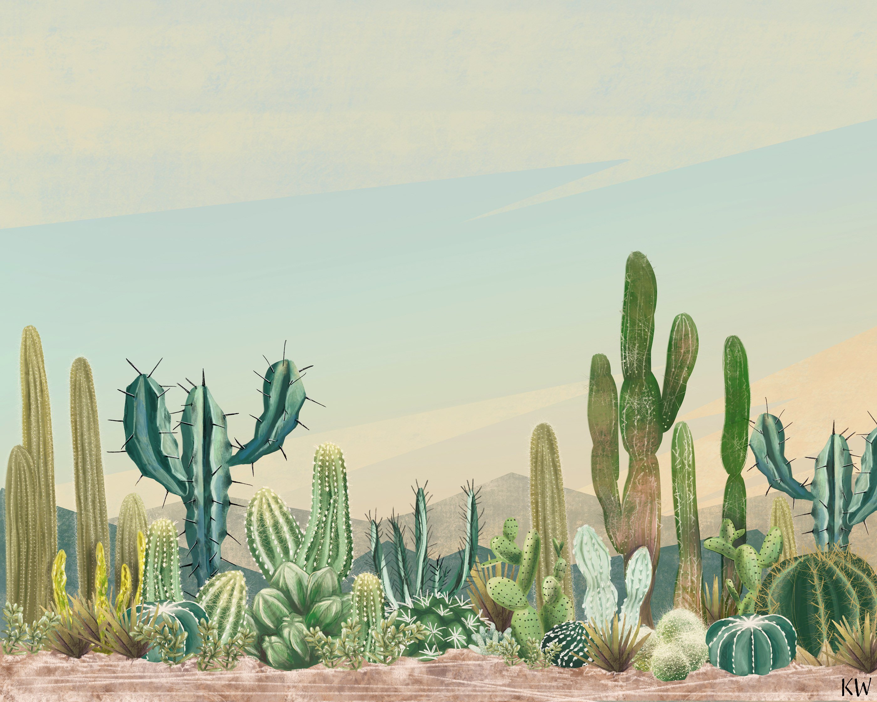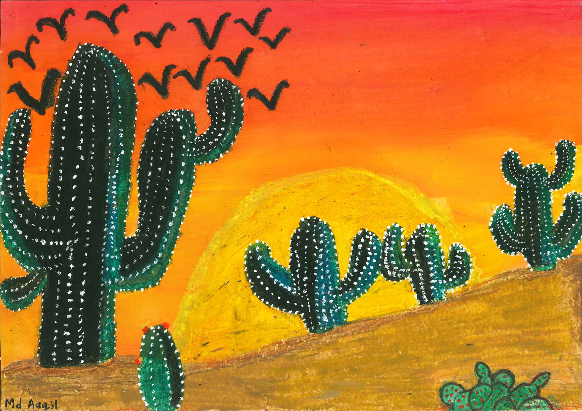 Кактус в пустыне рисунок
