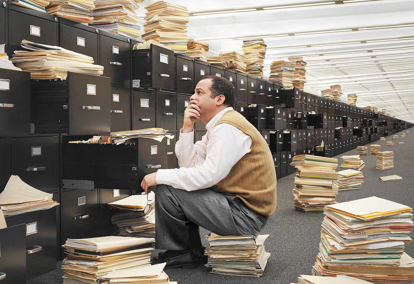 Человек с кучей документов
