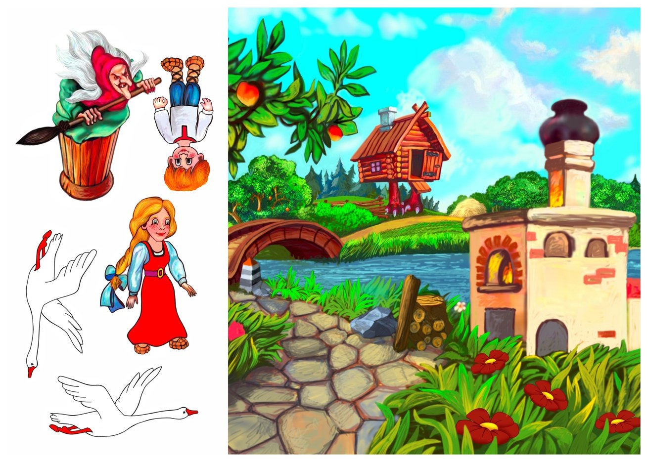 Сюжетные картинки к сказке гуси лебеди