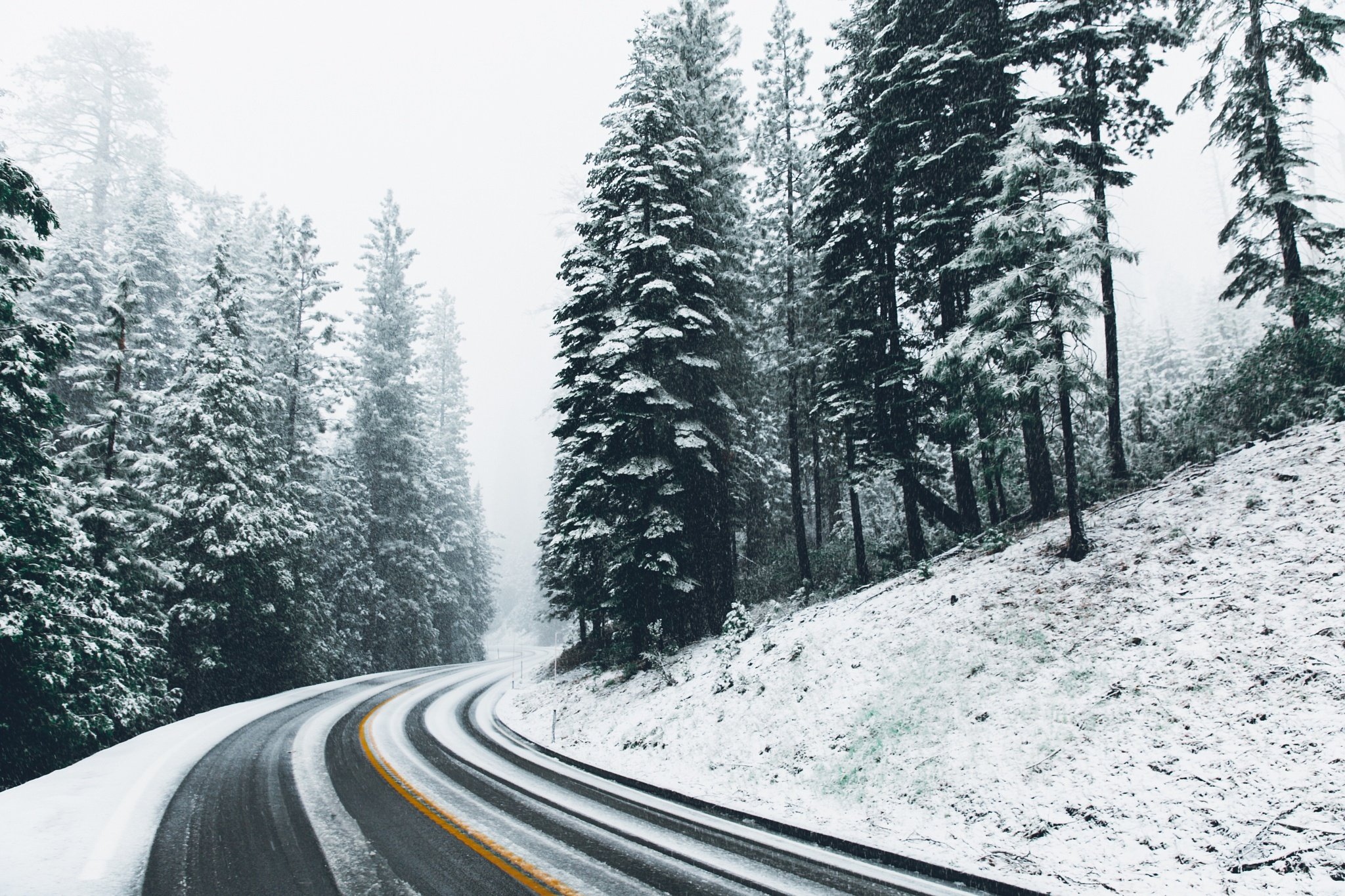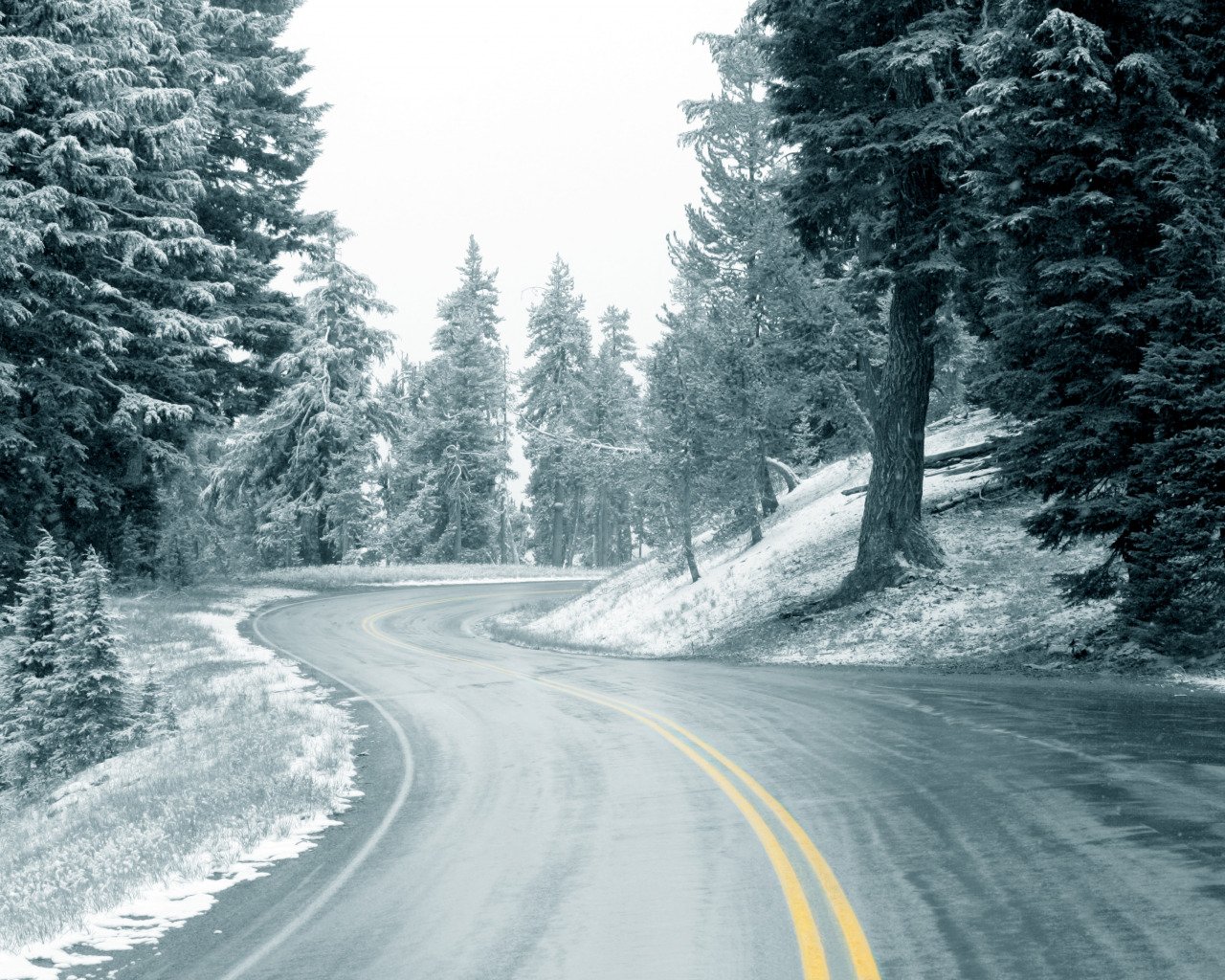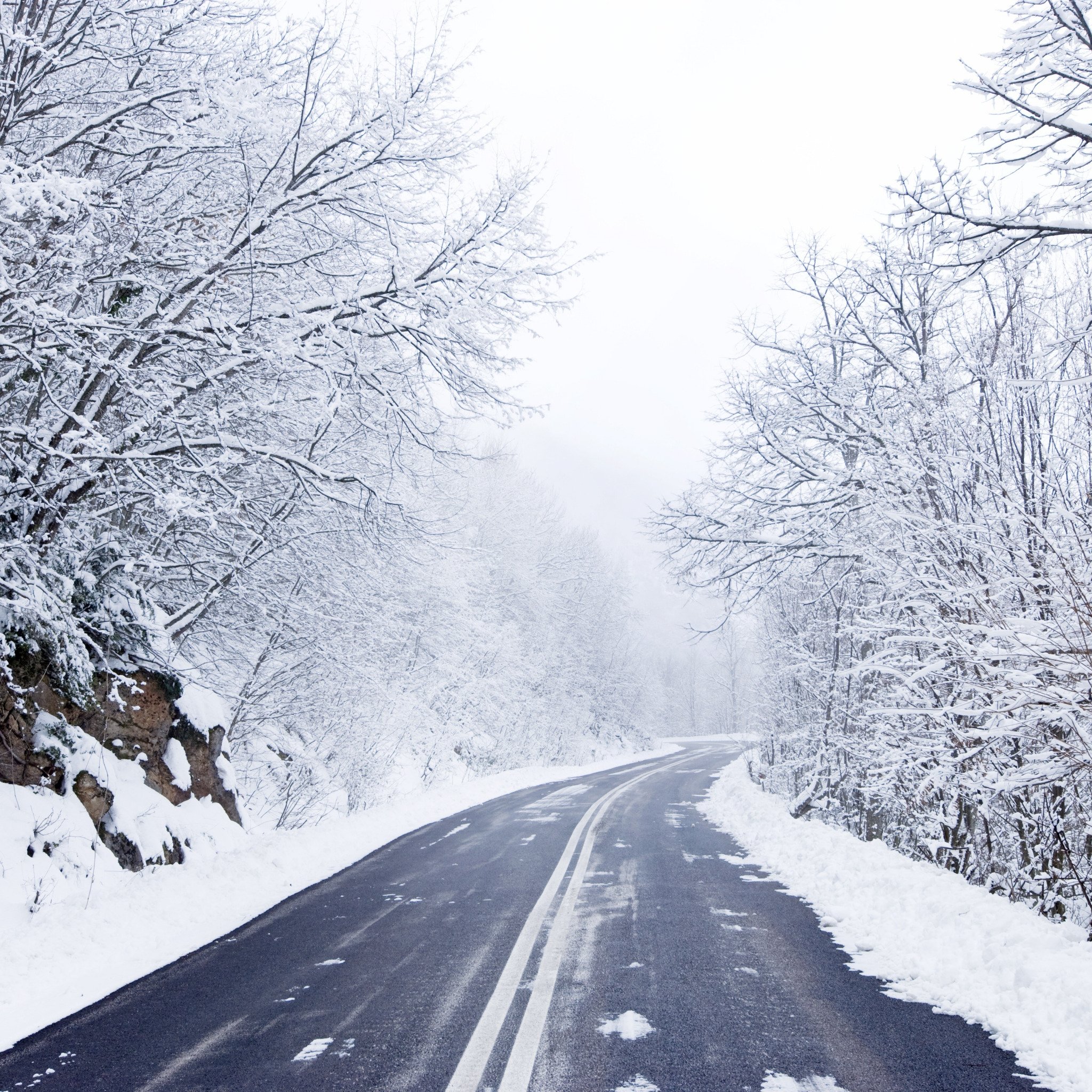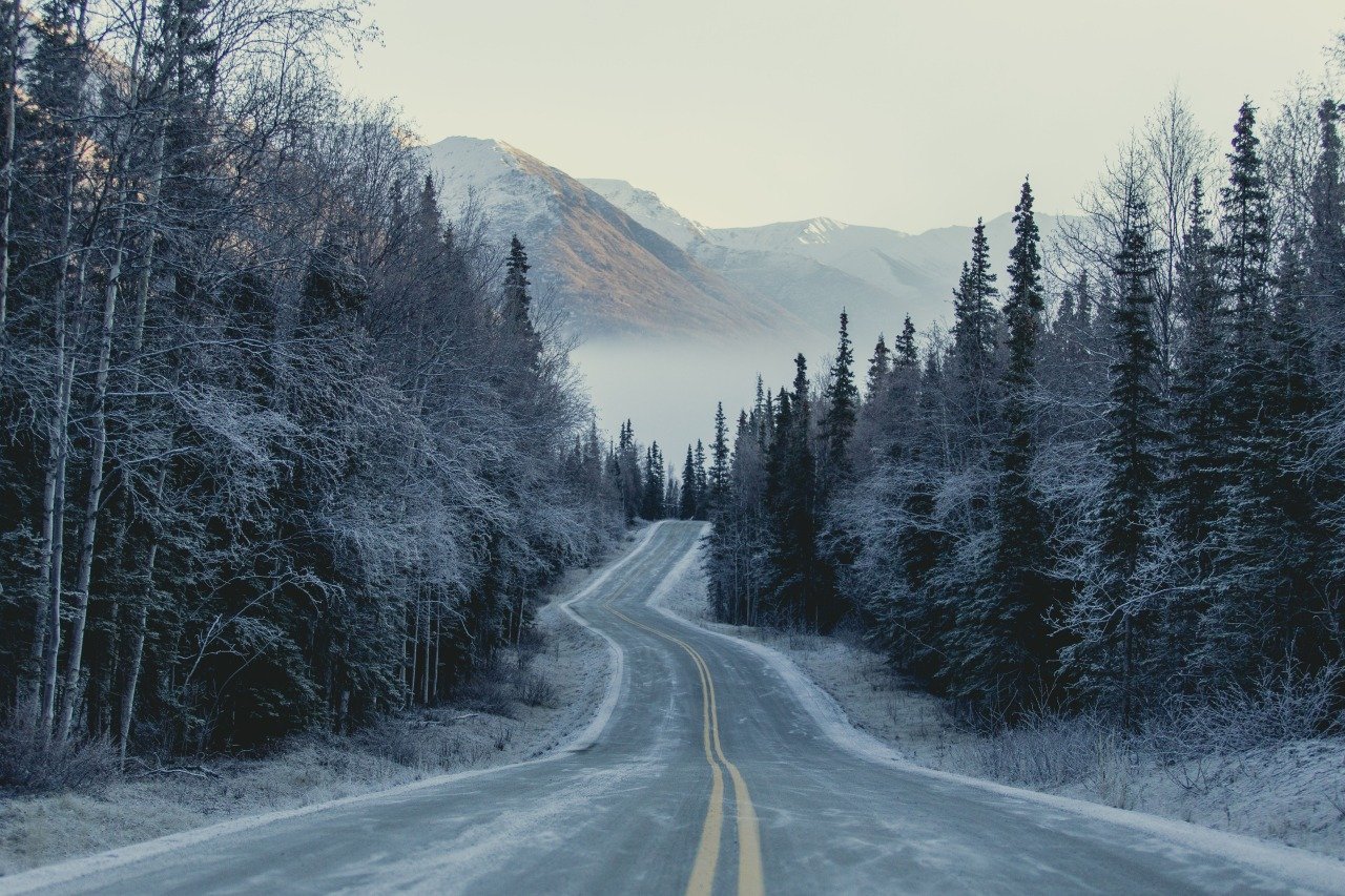 Зимняя трассаФото: Снежная дорога в горах