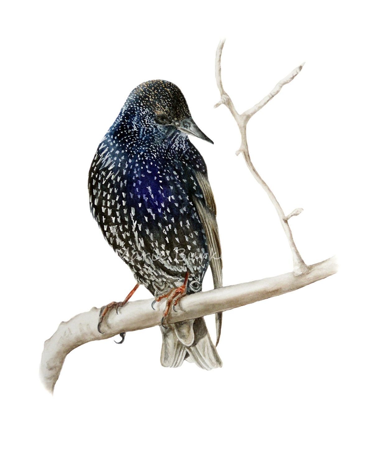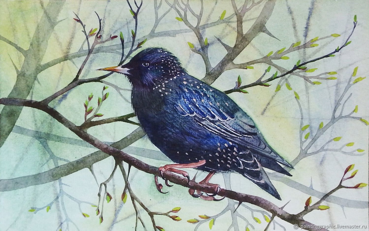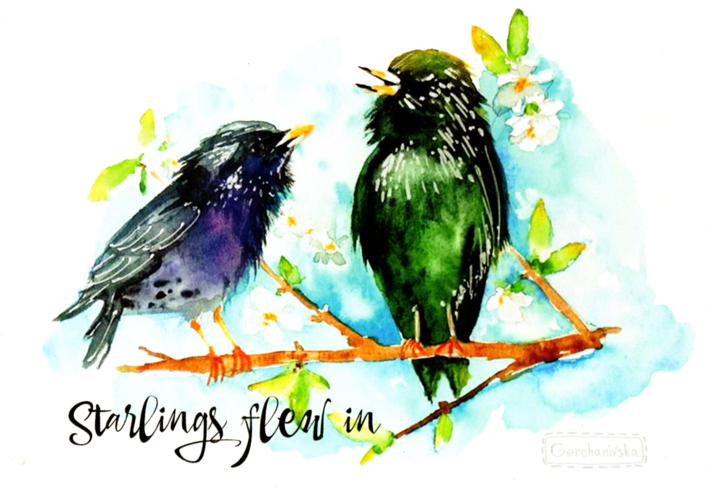 Скворец акварель