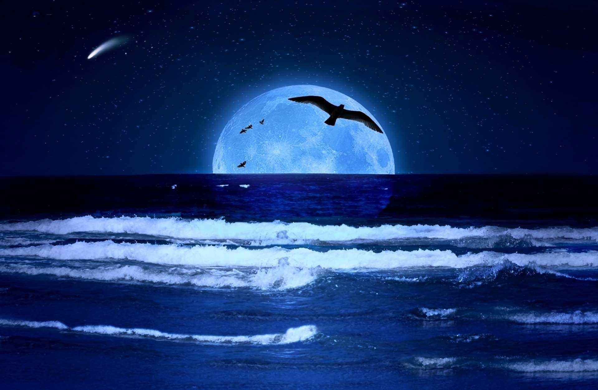 Сказочное полнолуниеФото: Ночное небо со звездами и луной