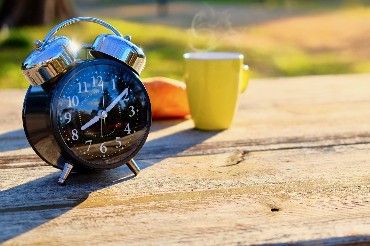 Открытка доброе утро кофе и будильник