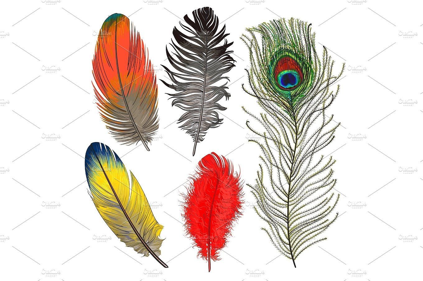 Перья птиц разнообразные
