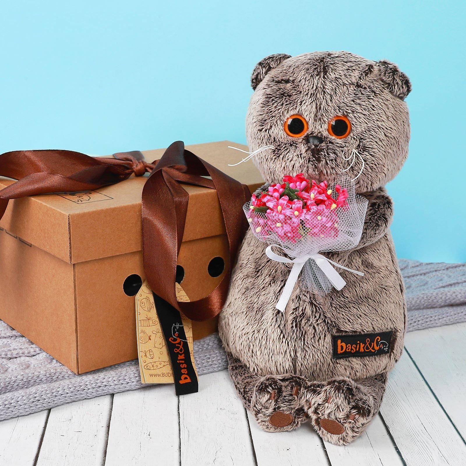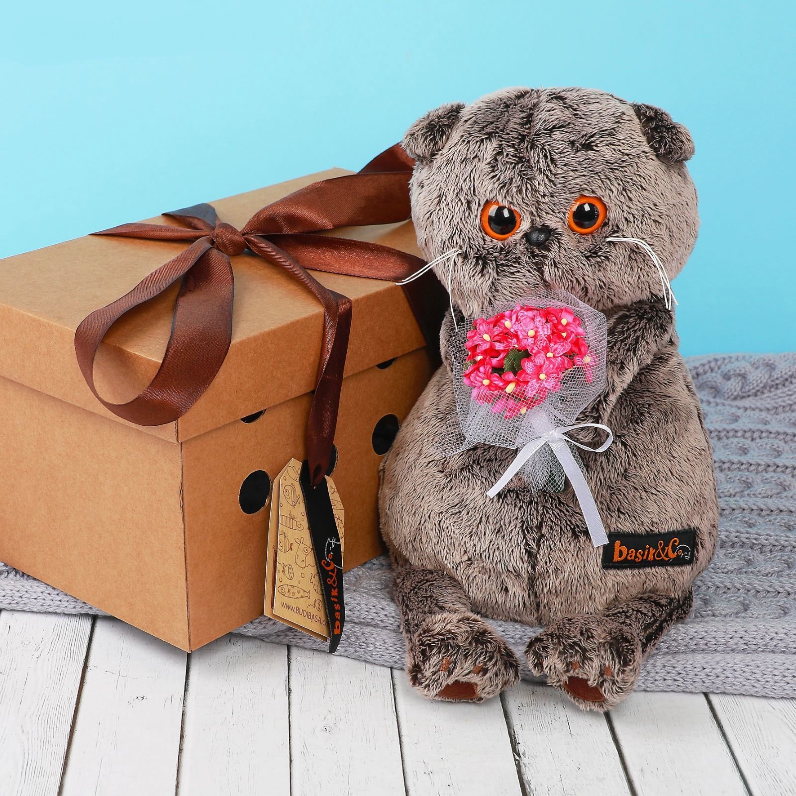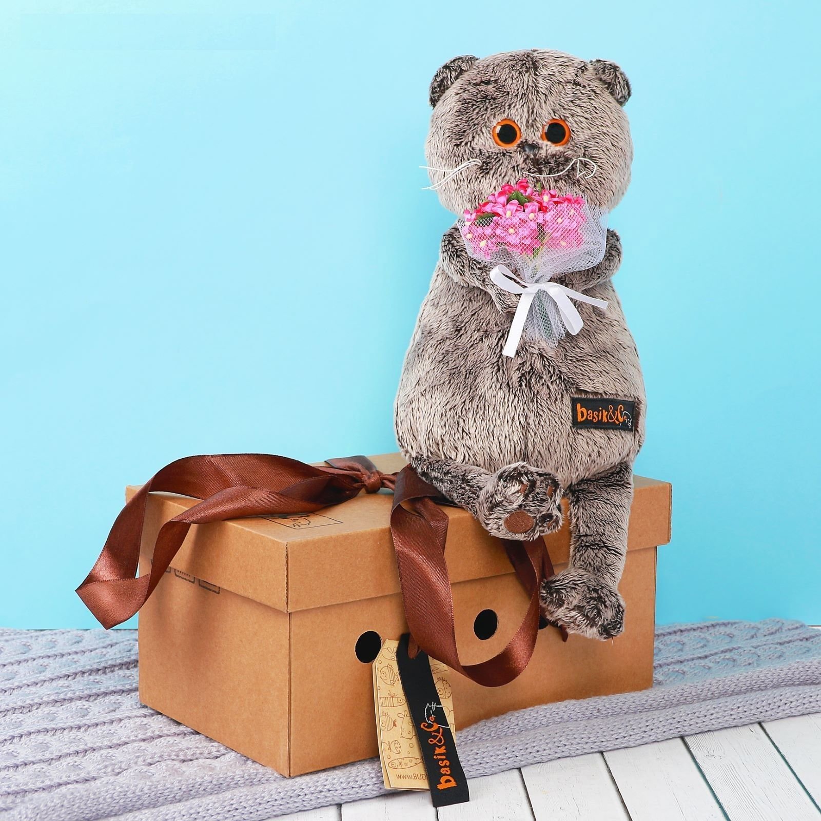 Кот Басик с пледом 25см