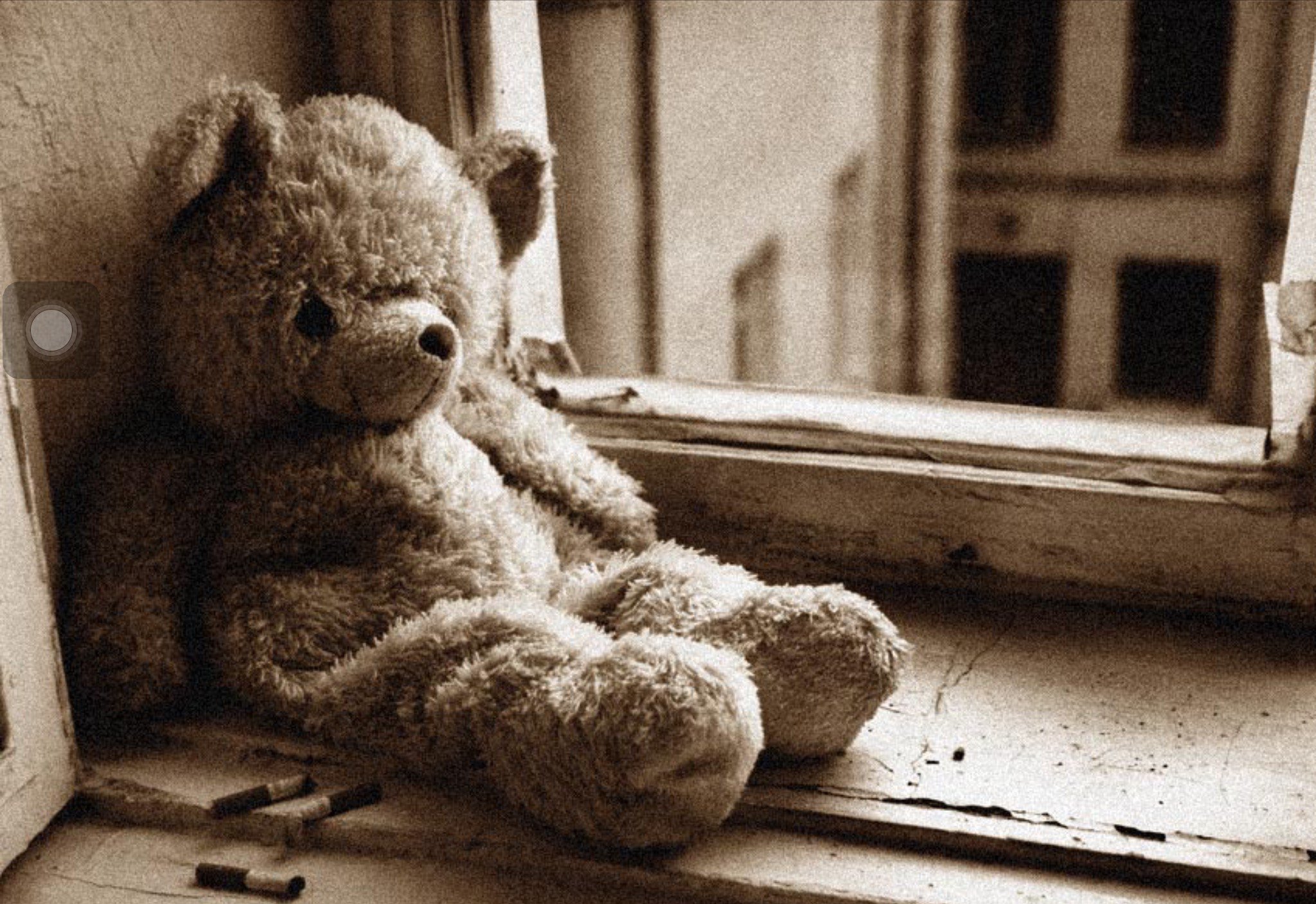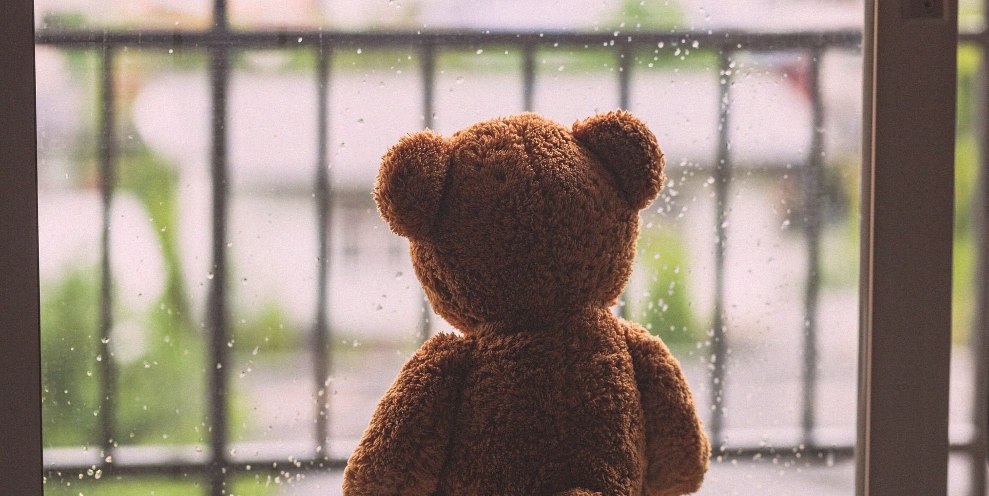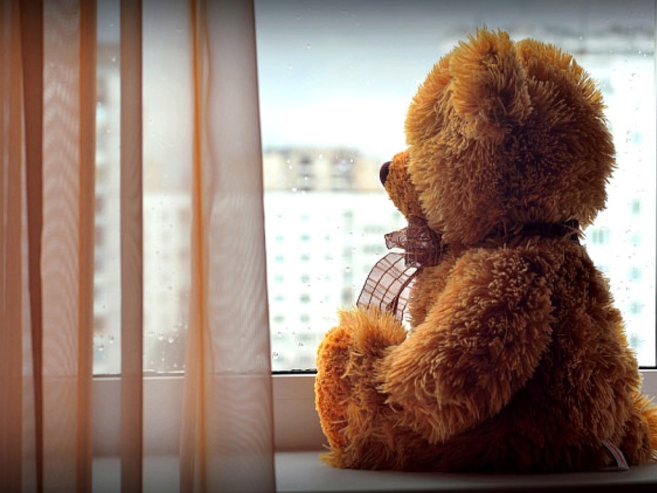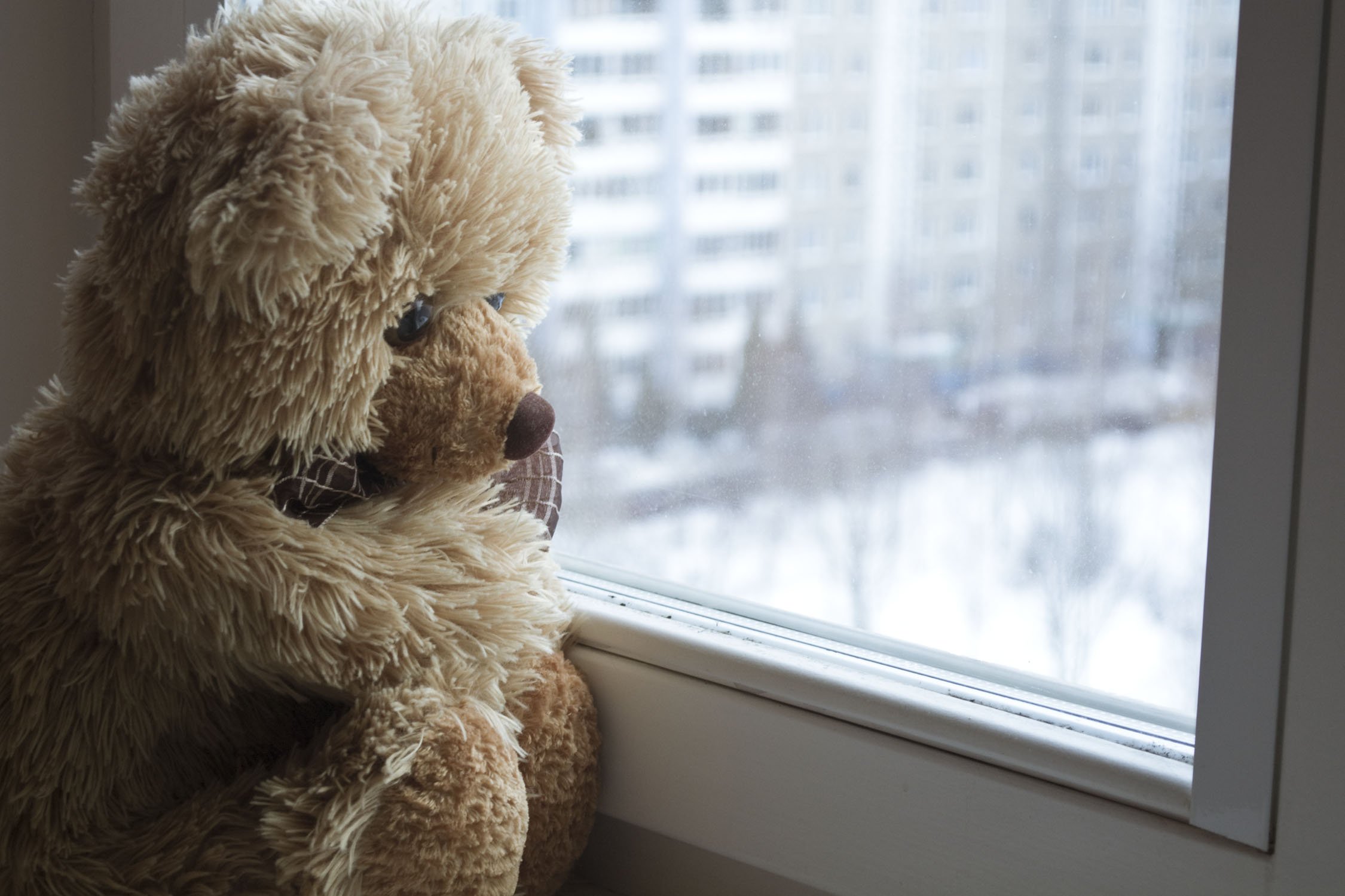 Плюшевый мишка у окна