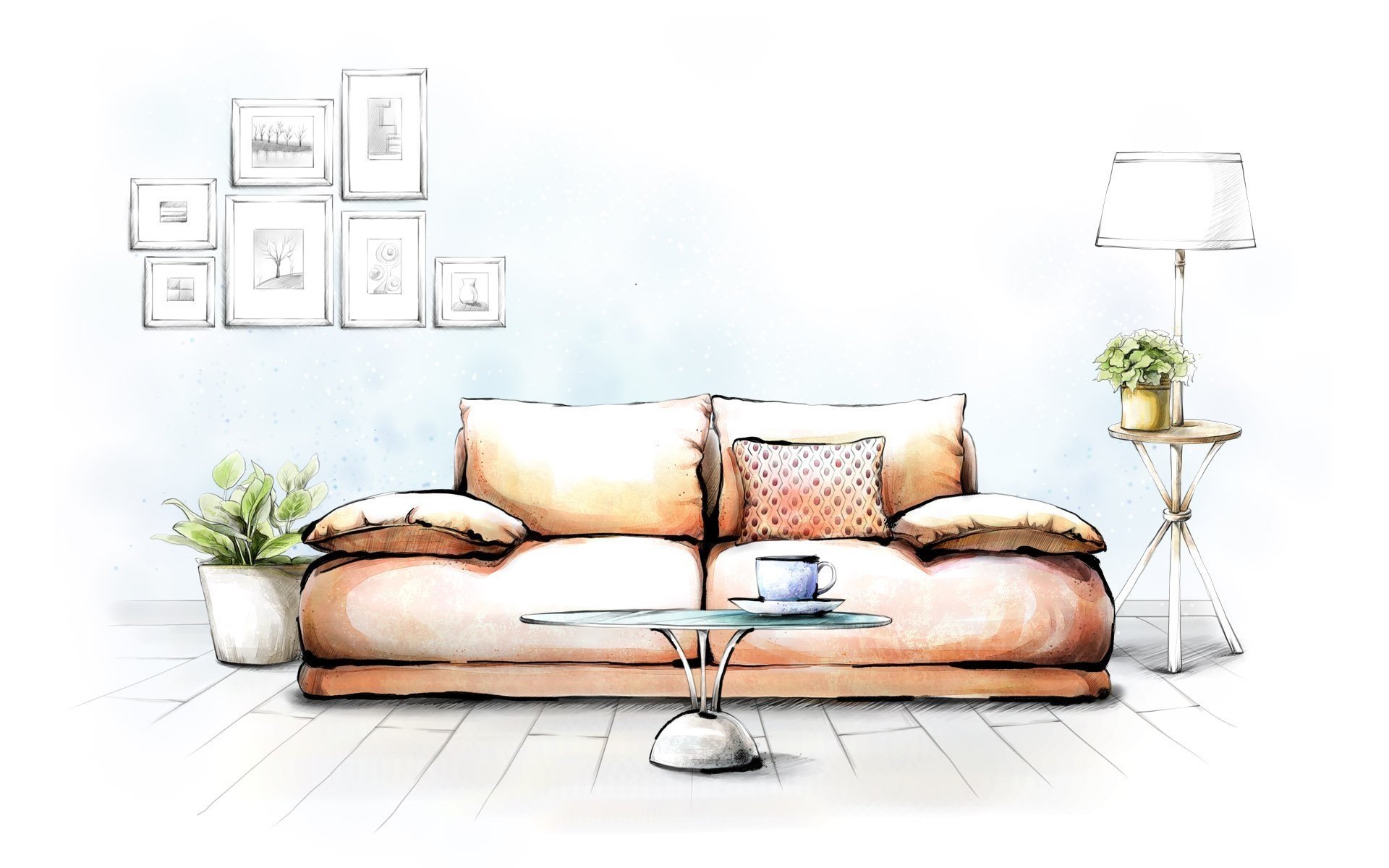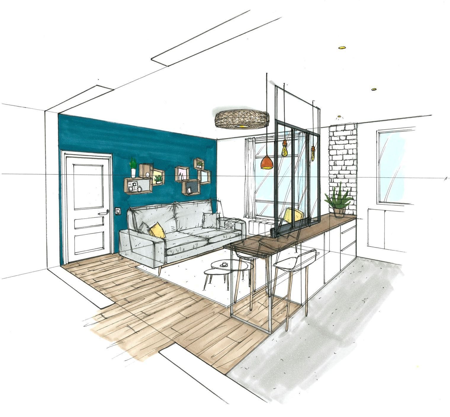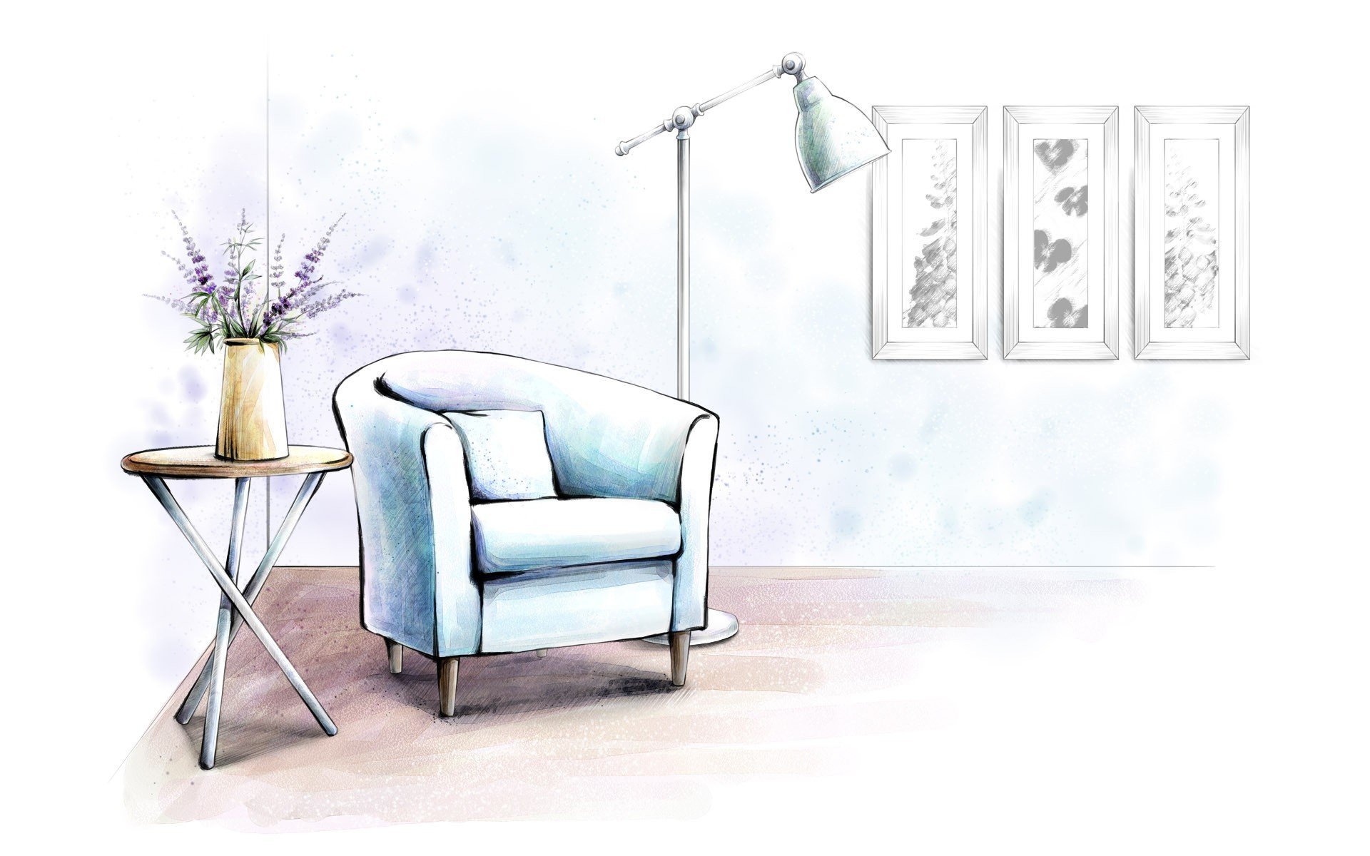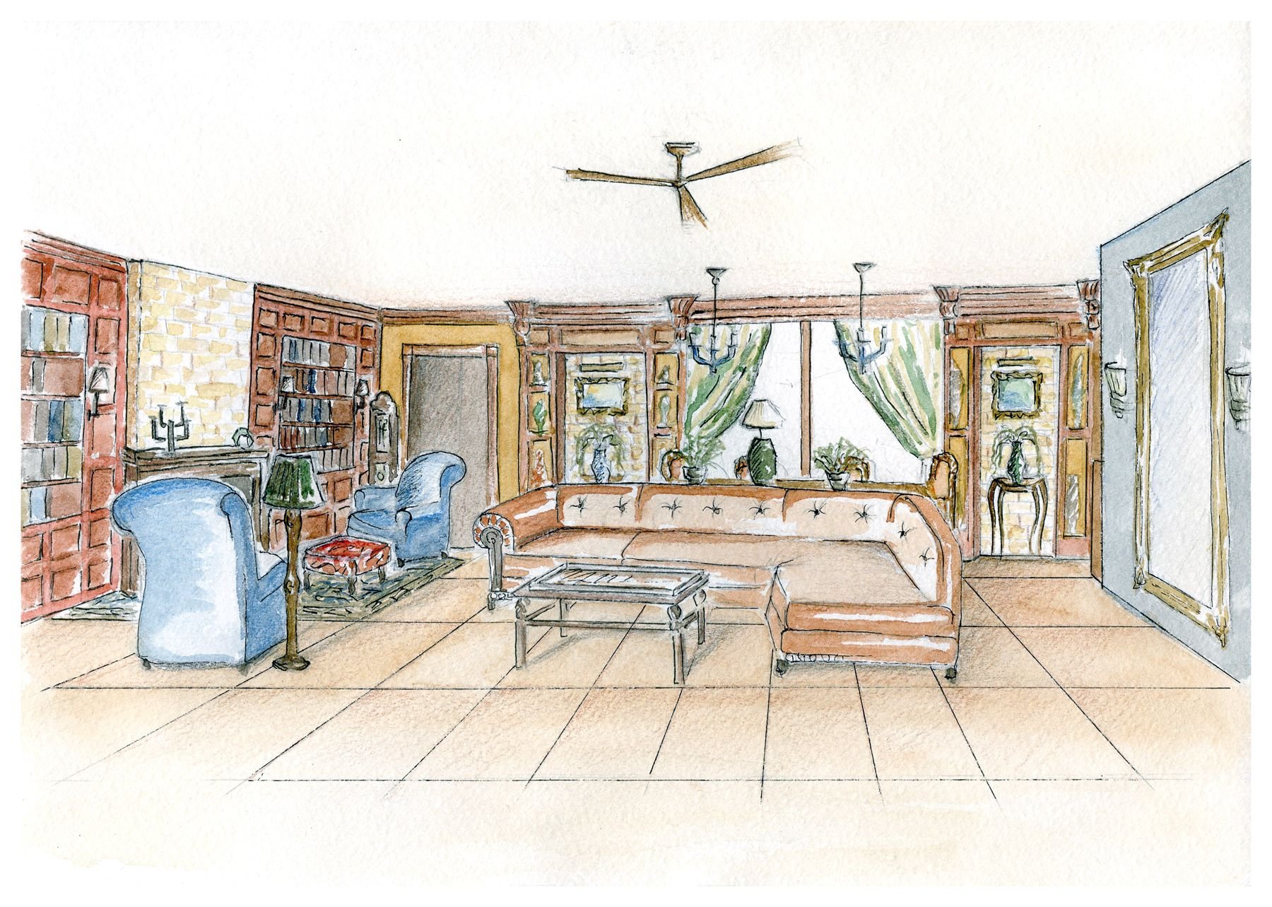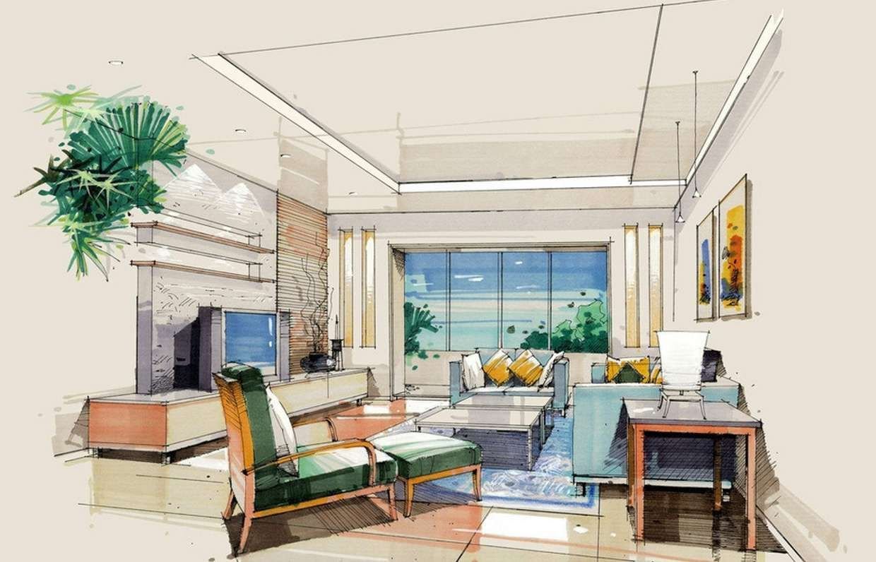 Эскиз интерьера комнаты в цвете