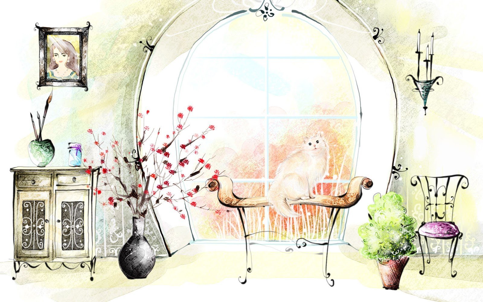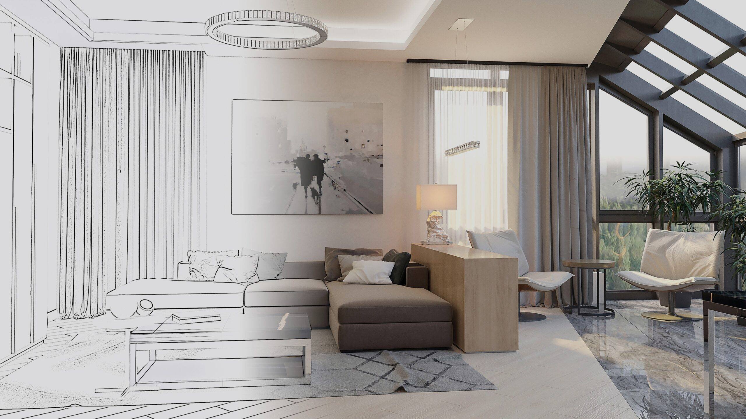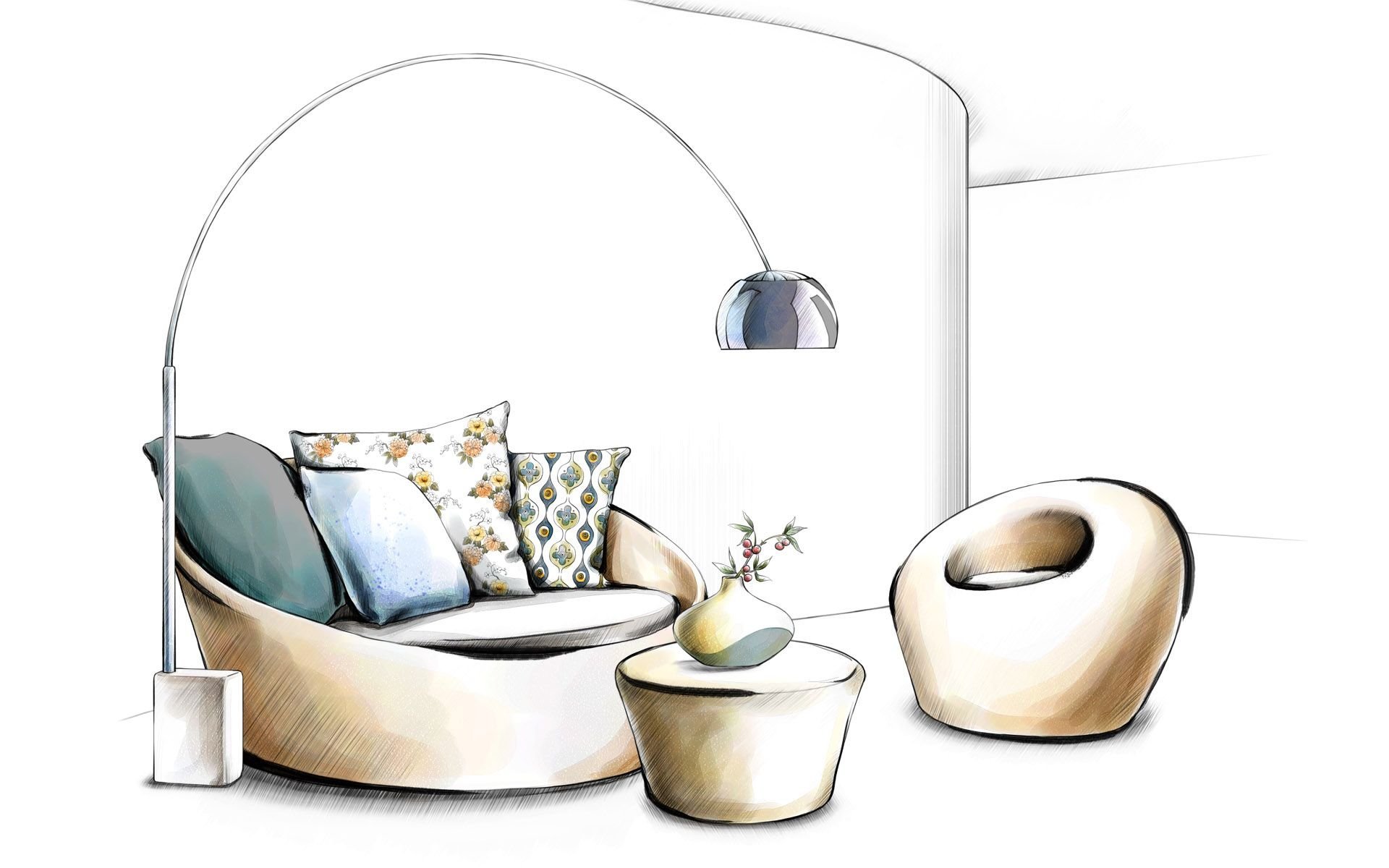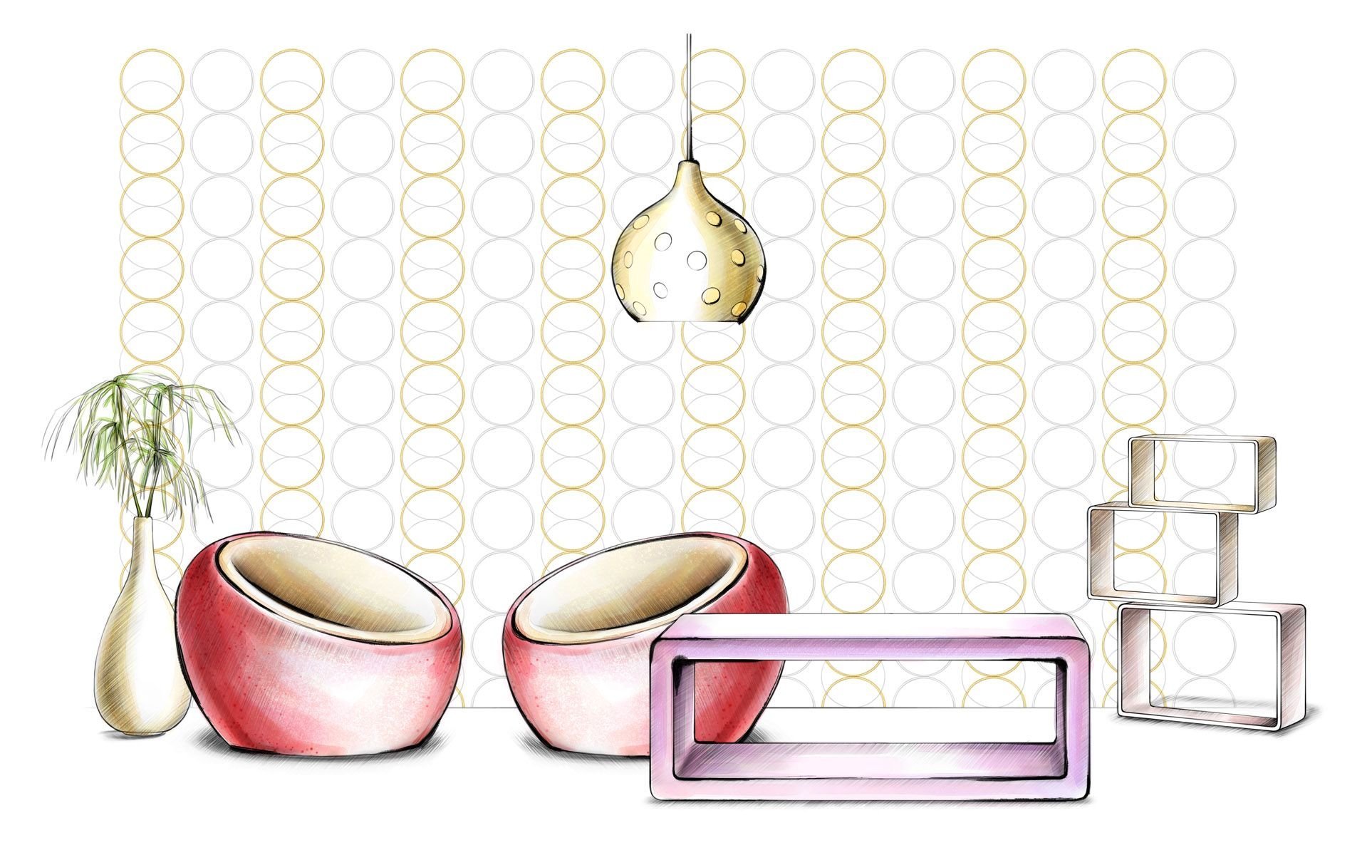 Эскиз интерьера комнаты в цвете