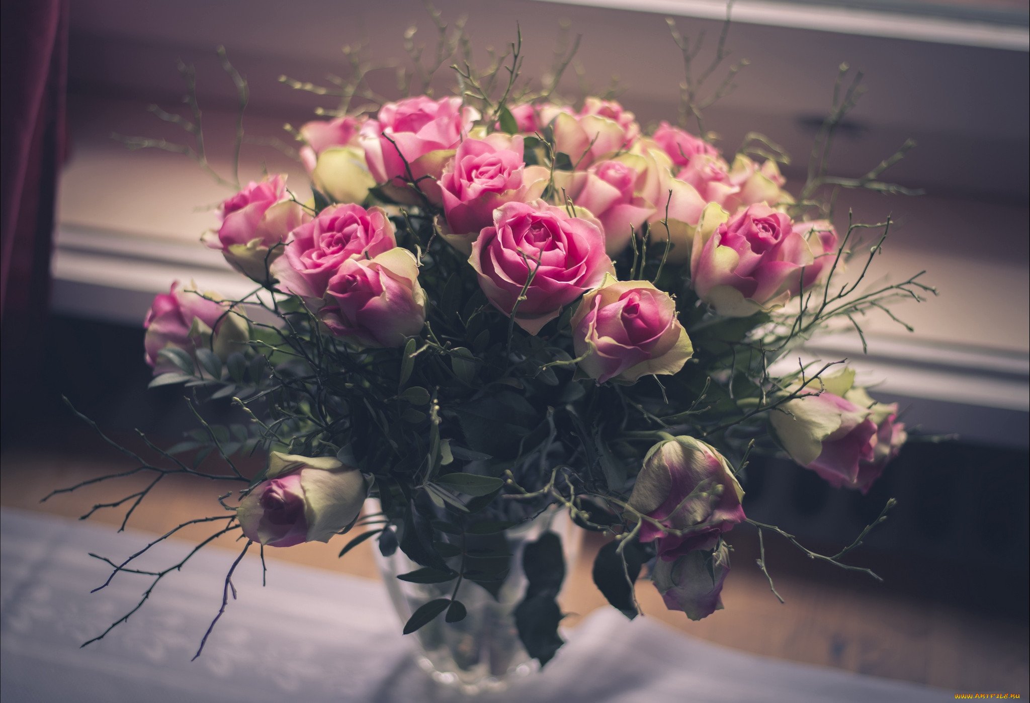 Вечерний букет розФото: Красивые вечерние розы