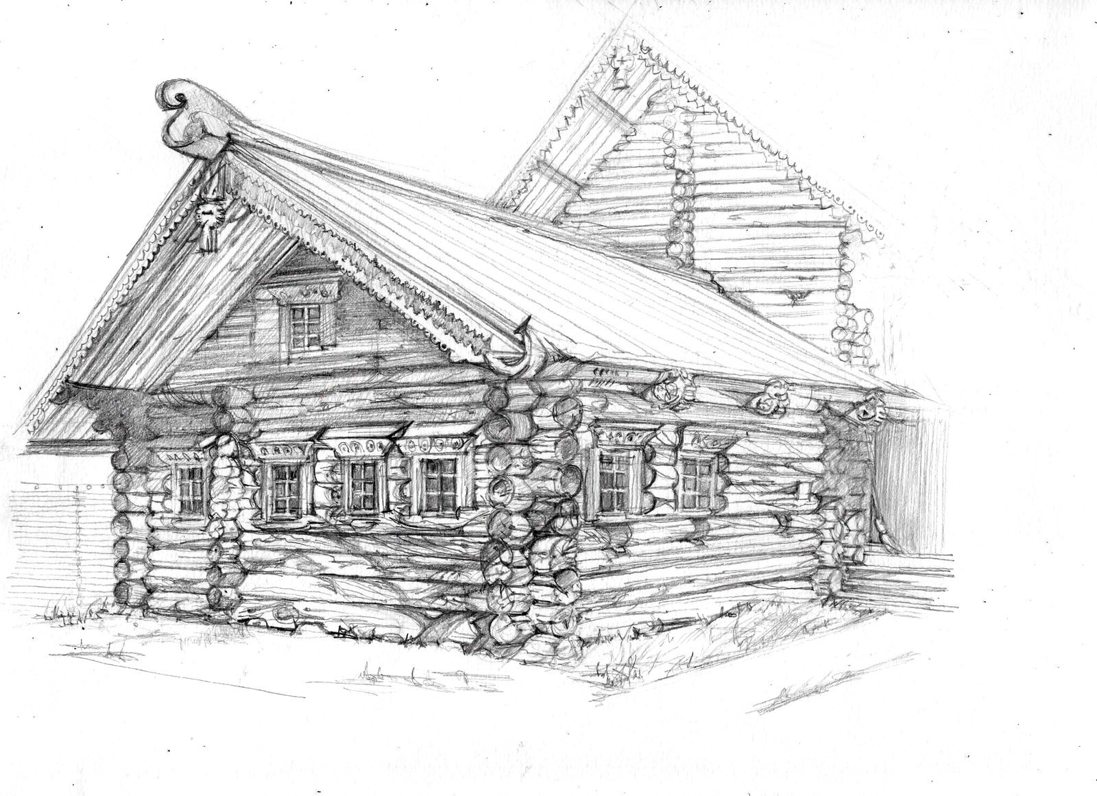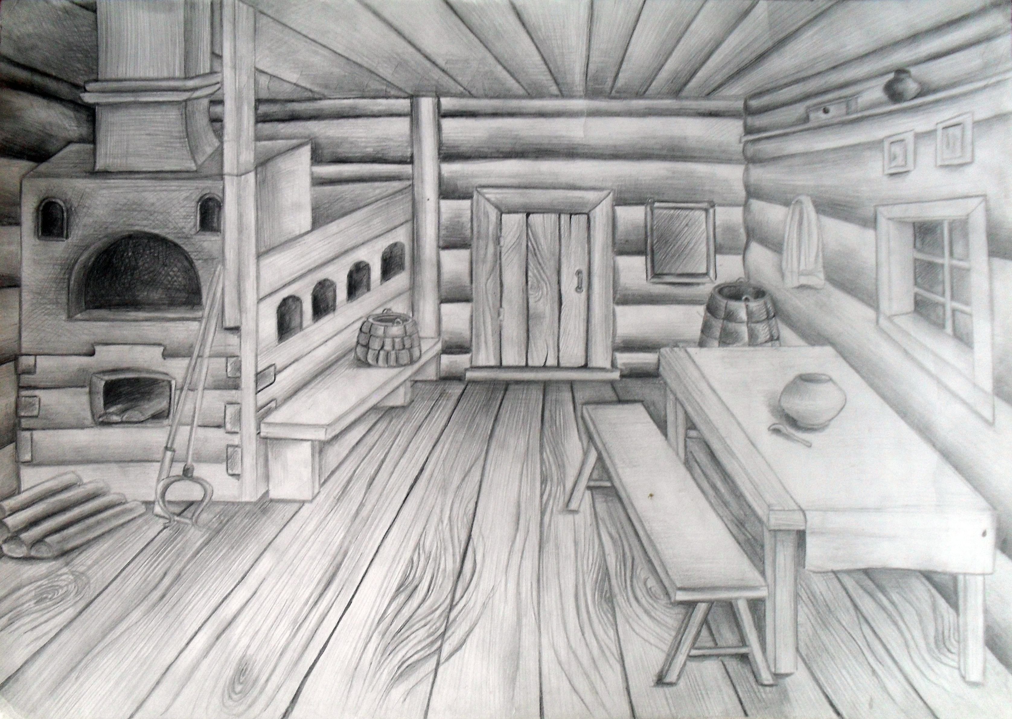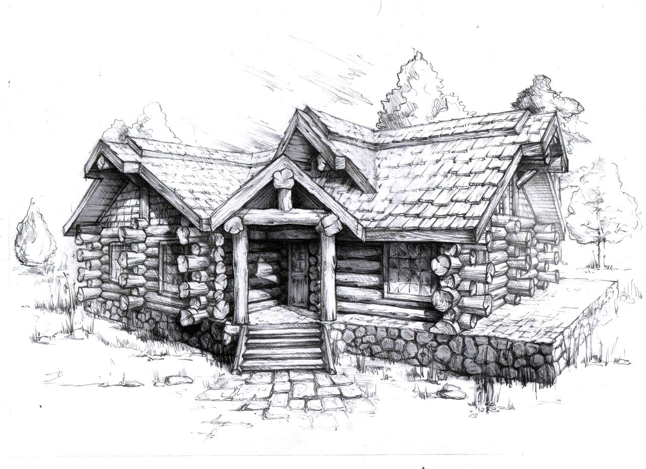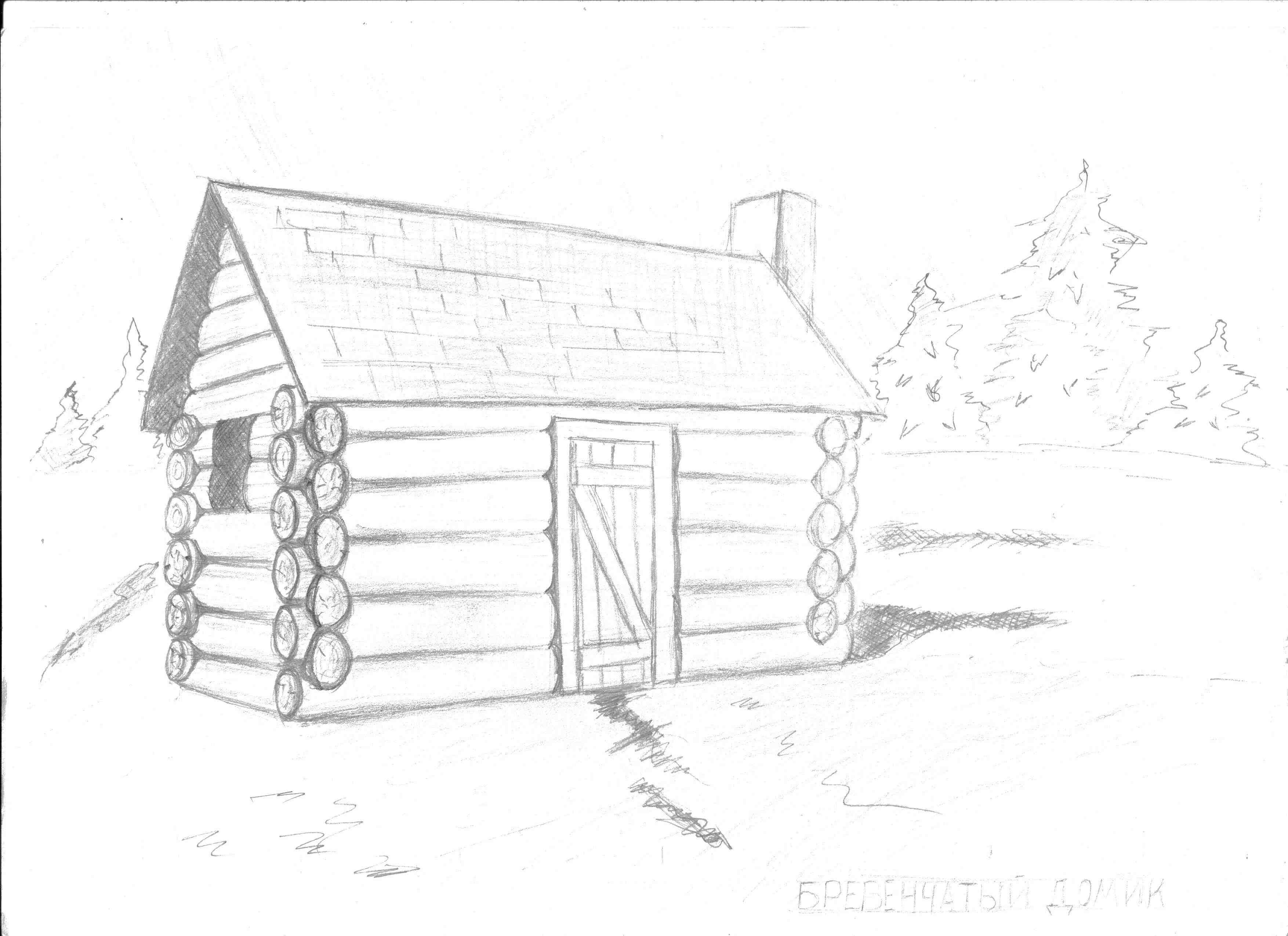 Деревянная изба рисунок