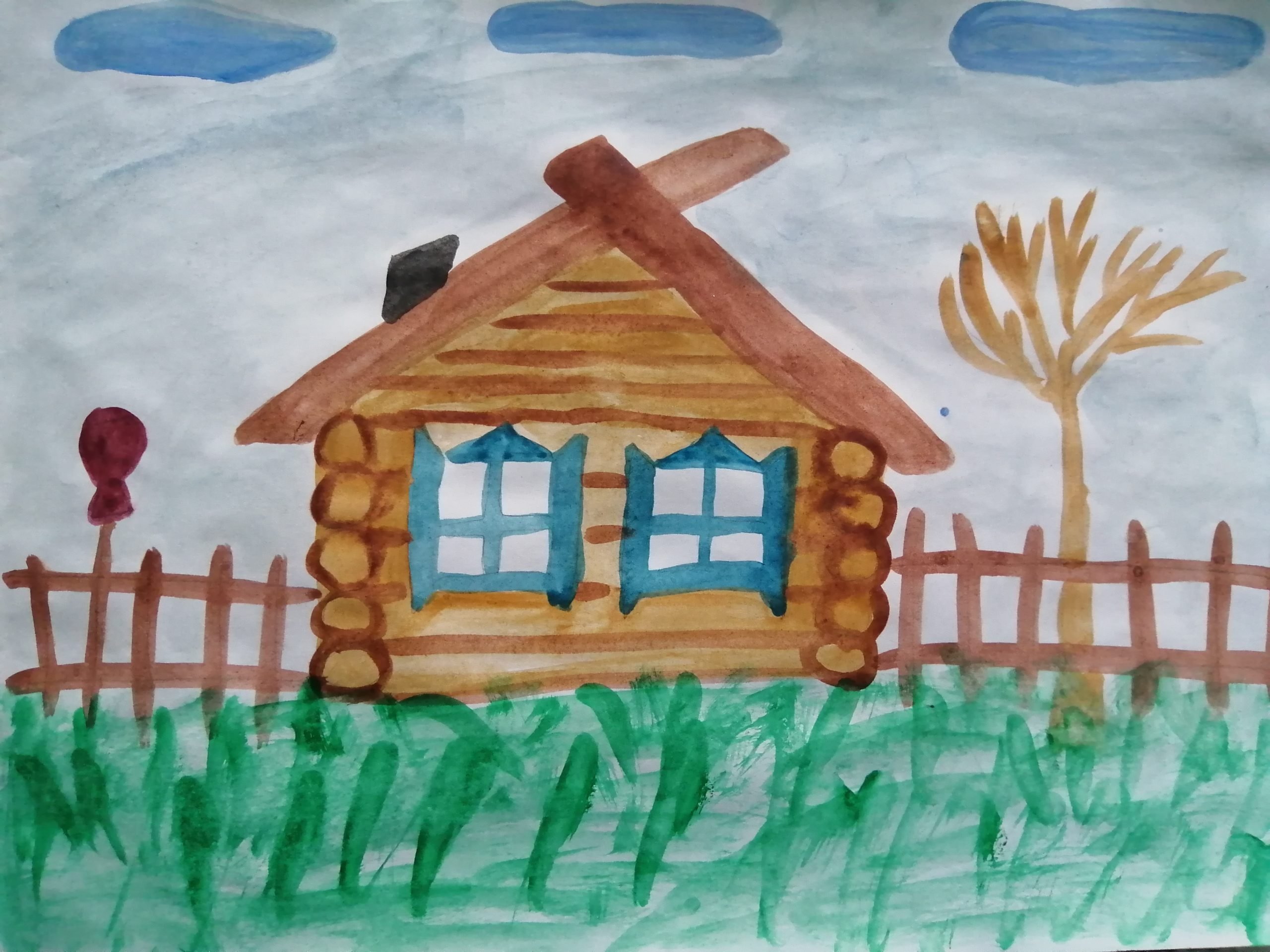 Фото: Деревенский домик гуашью