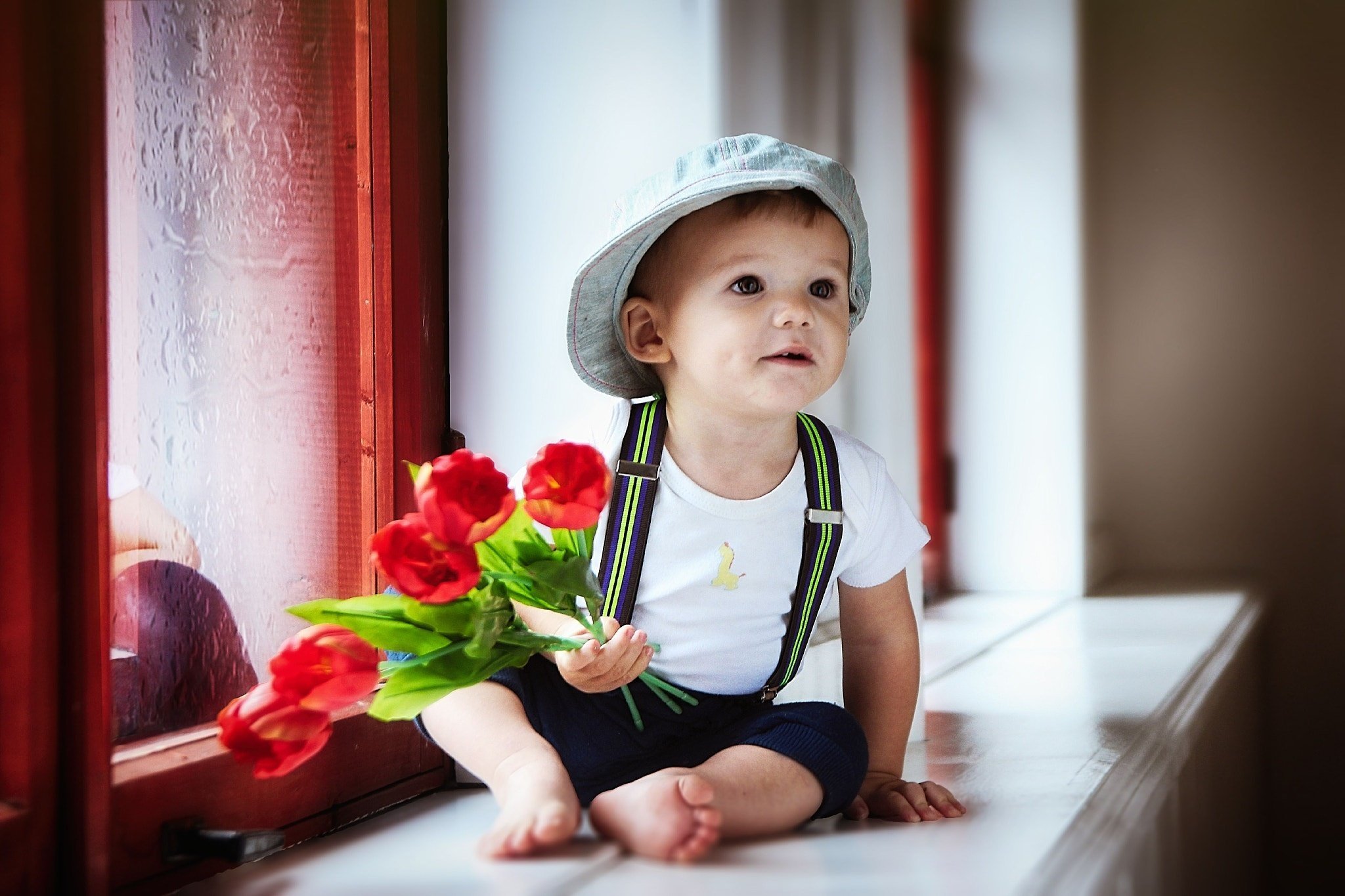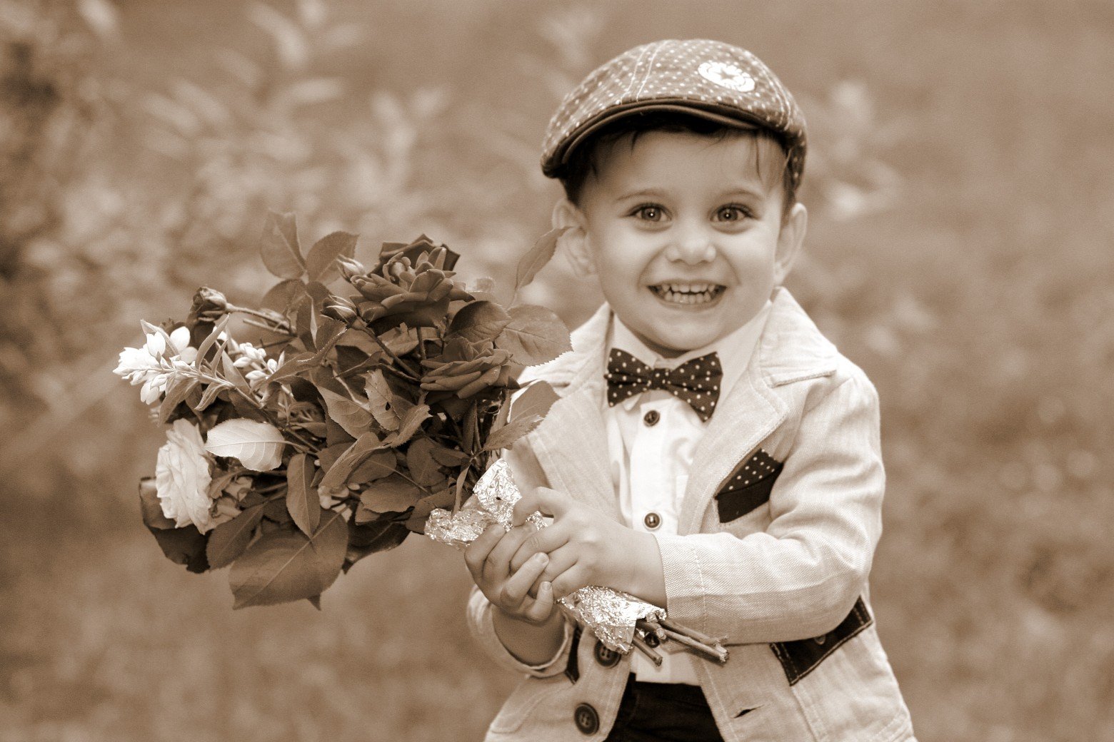 Маленький мальчик с цветами