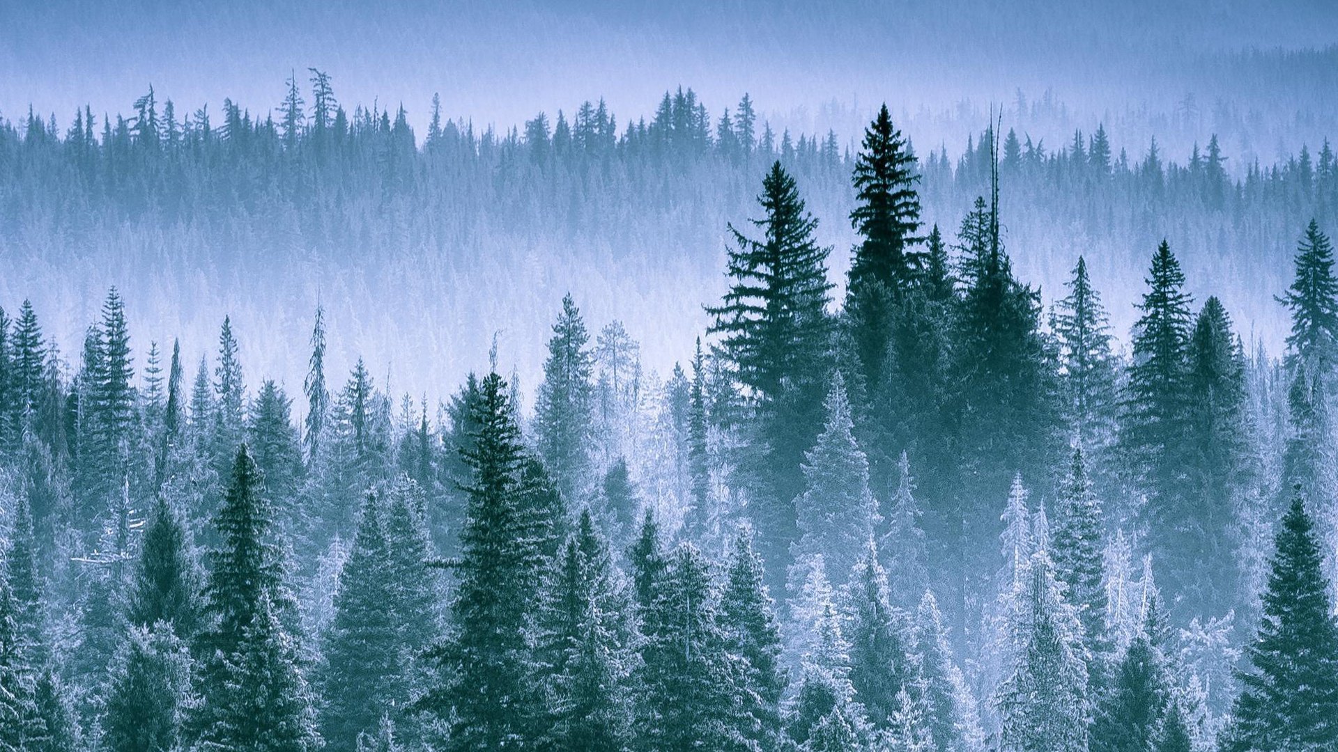 Хвойный лес в тумане