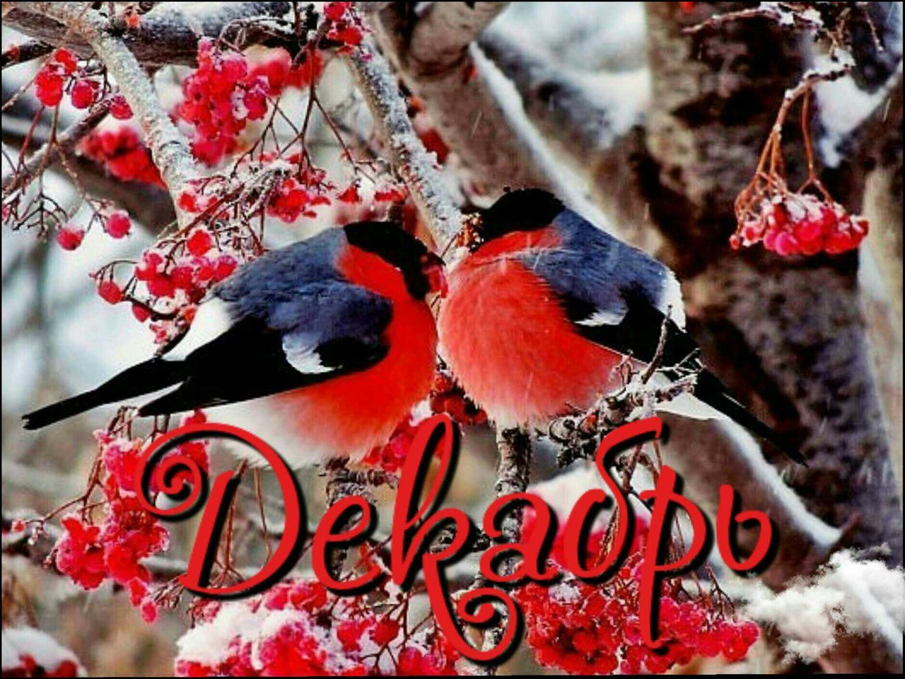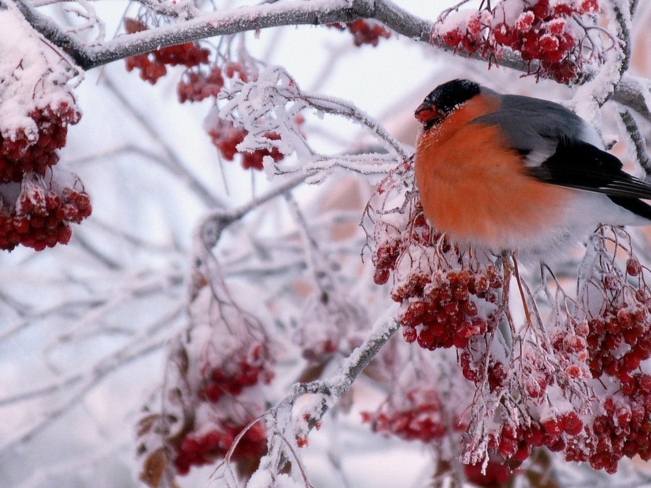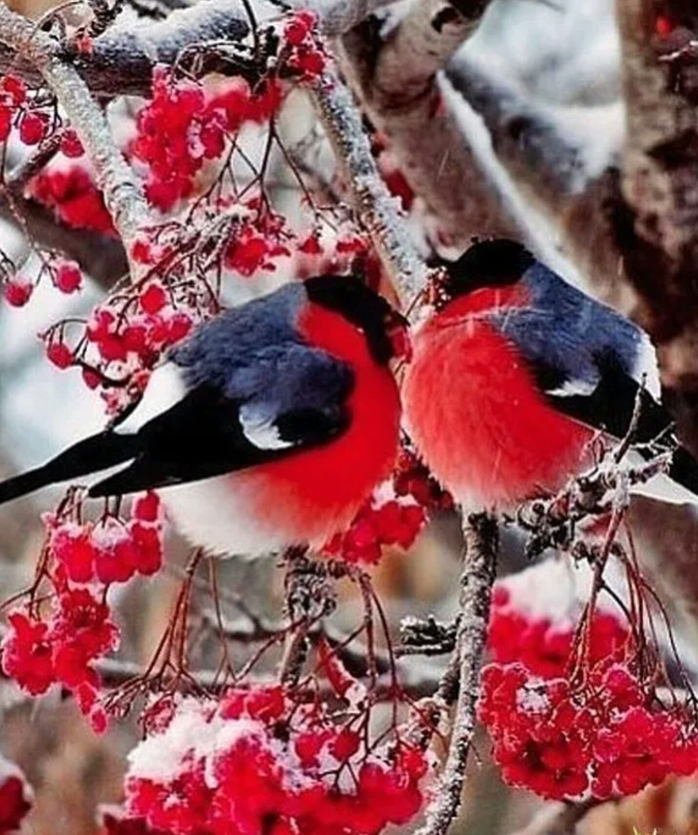 Снегири на рябине зимой