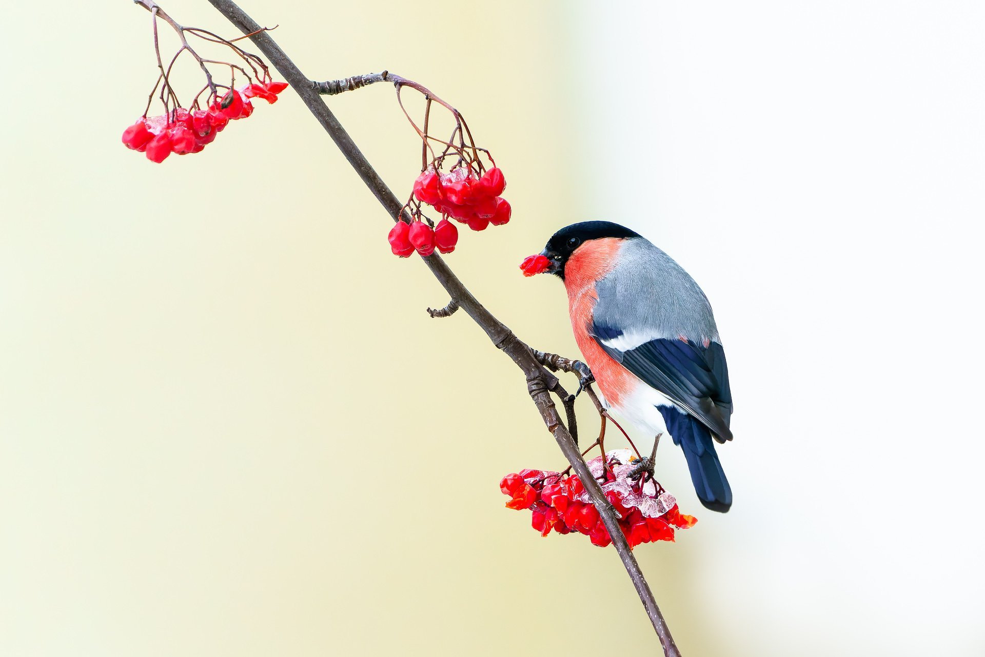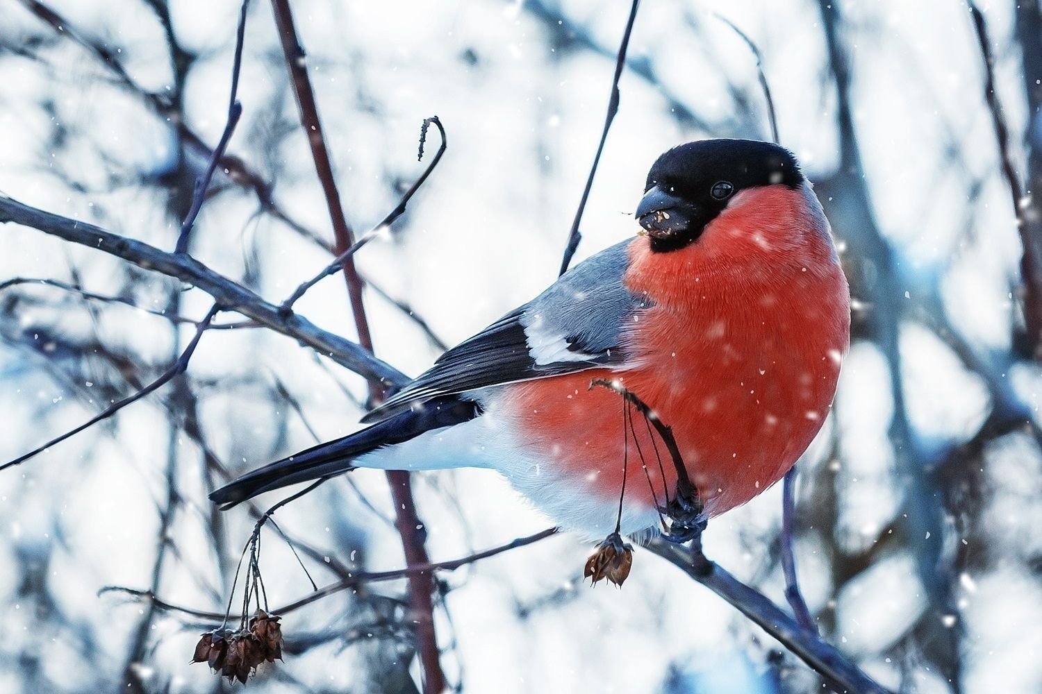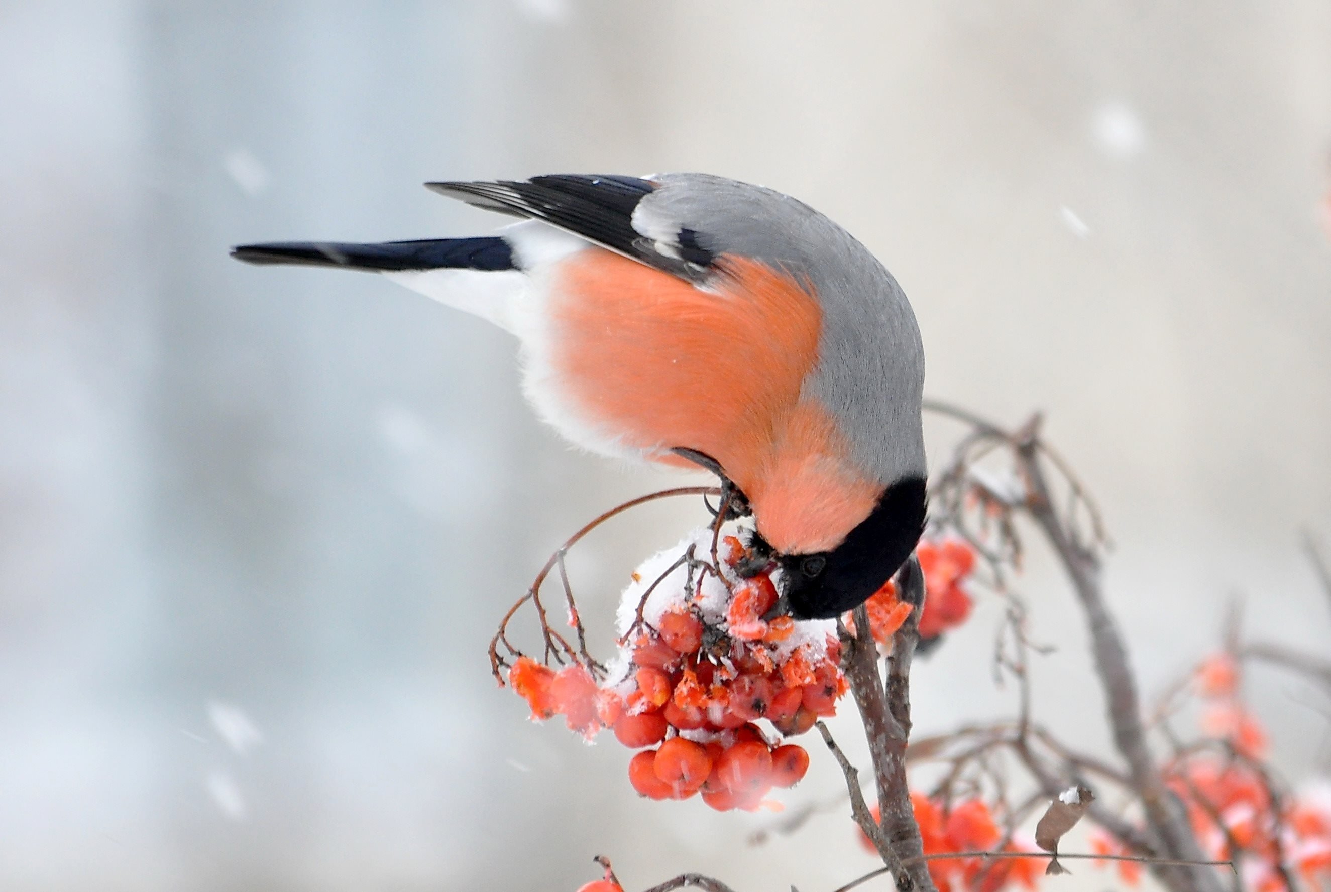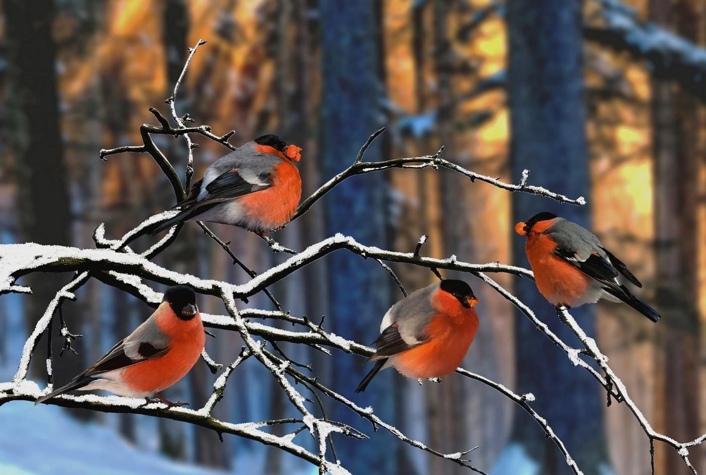 Снегири на рябине зимой