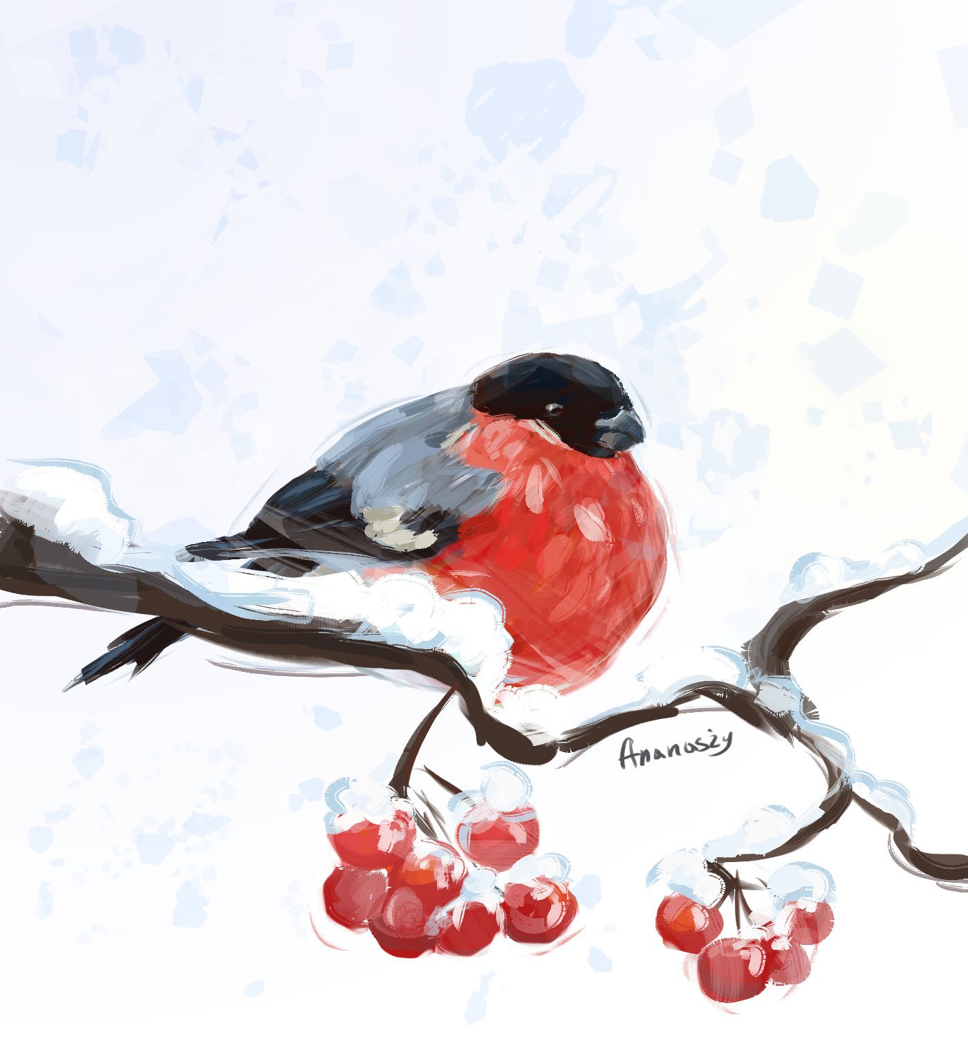 Картинка снегирь на ветке