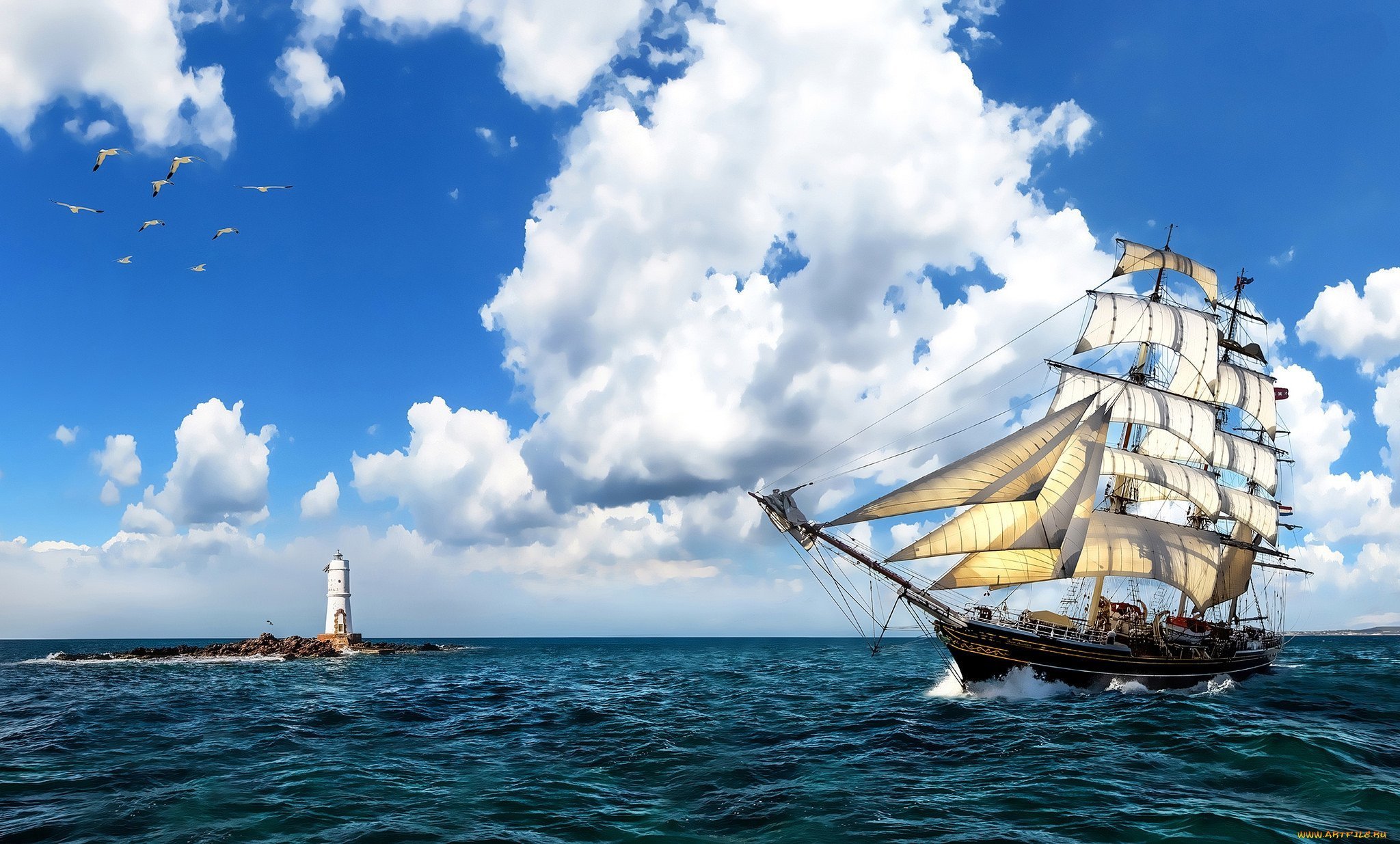 Картины море корабль КрузенштернФото: Корабль с парусами