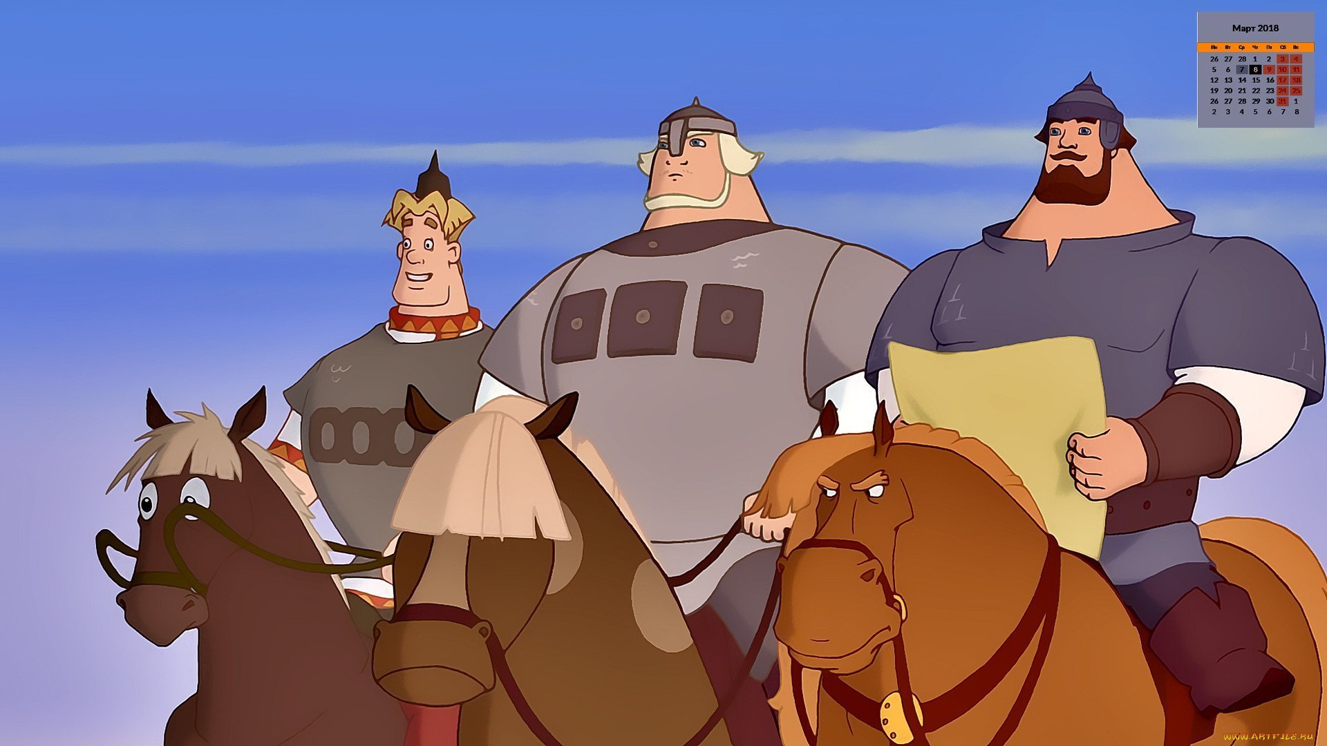 Илья Муромец алёша Попович и Добрыня НикитичФото: Три богатыря персонажи мультфильма